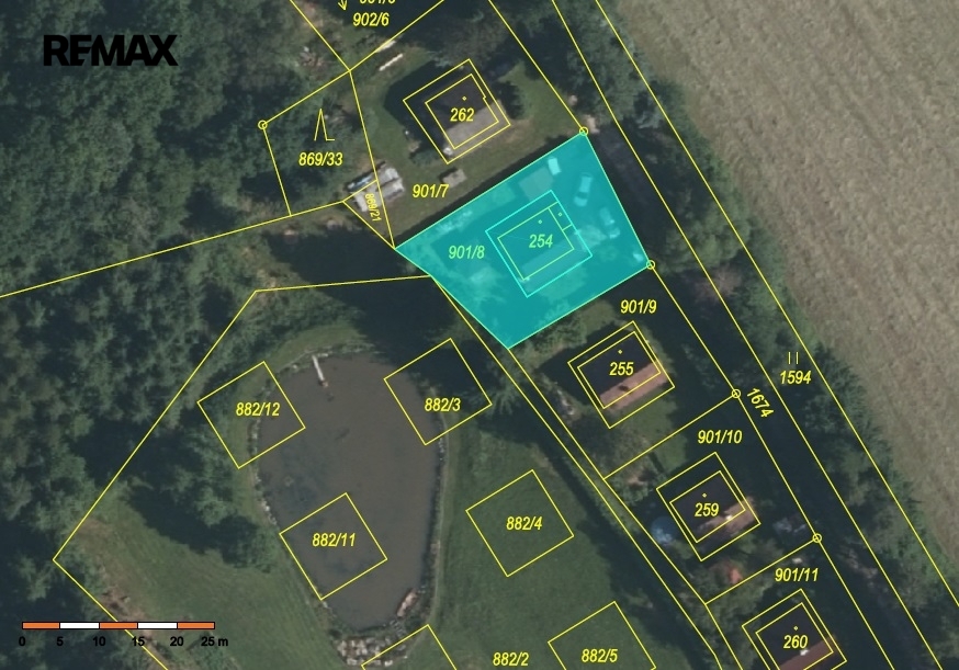 Objekt je o zastavěné ploše cca 50 m2 a stojí na oploceném pozemku o celkové rozloze 469 m2.