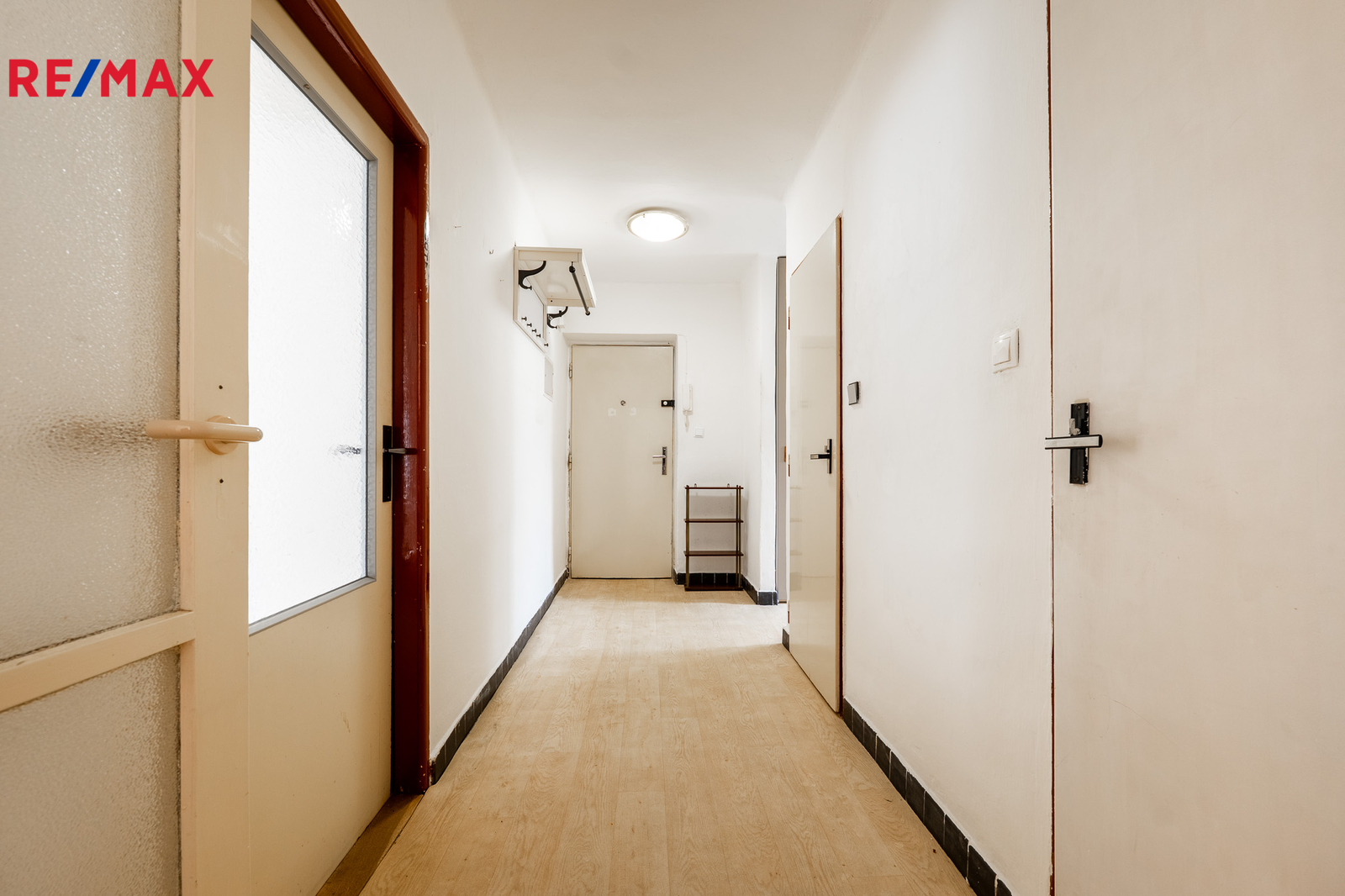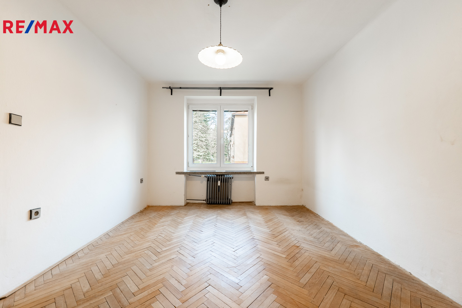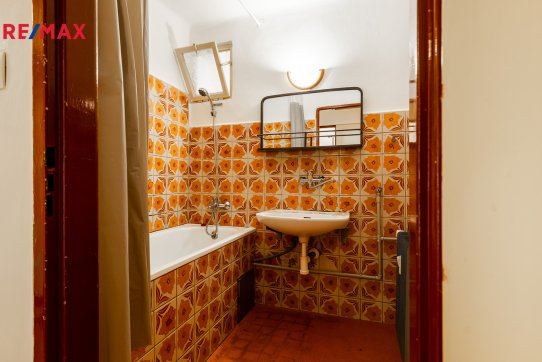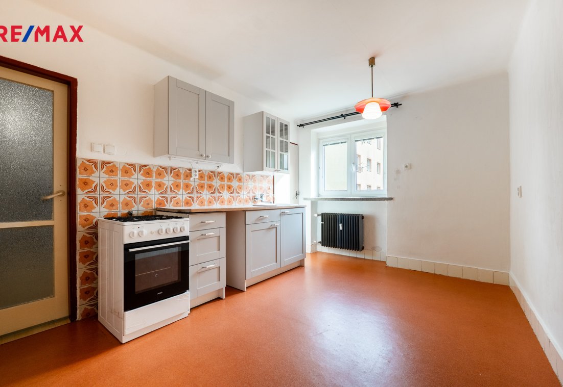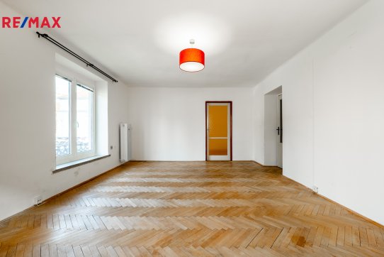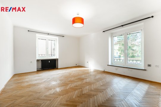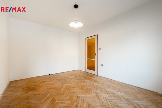 ložnice (13 m2). V obývacím pokoji a ložnici jsou původní parkety připravené k renovaci. V prostorné vstupní chodbě jsou vestavěné skříně a z chodby je přistup do koupelny osazené vanou, samostatného WC a komory. V kuchyni je ještě spíž.