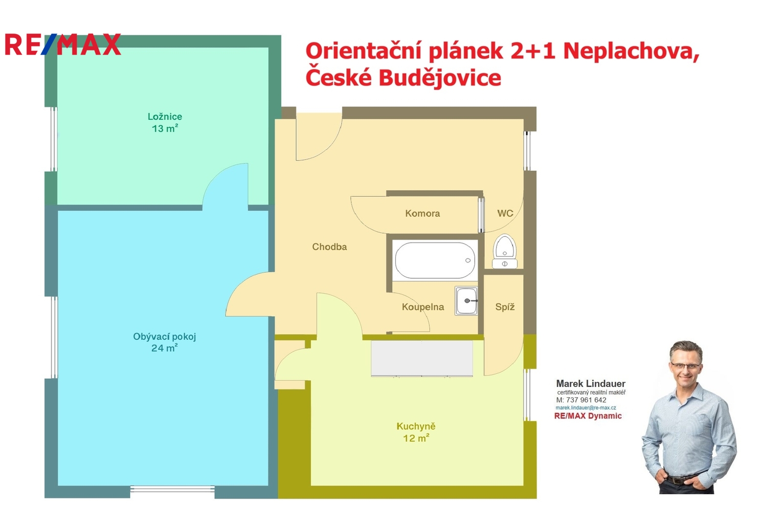 Nabízím k prodeji zděný byt 2+1, ulice Neplachova v Českých Budějovicích, 76 m2, osobní vlastnictví, 1. nadzemní podlaží.