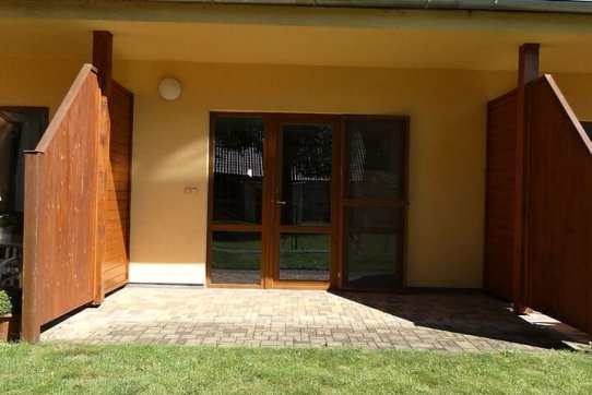 Výměra bytu 65,74 m2, terasa 11 m2, předzahrádka 15 m2.