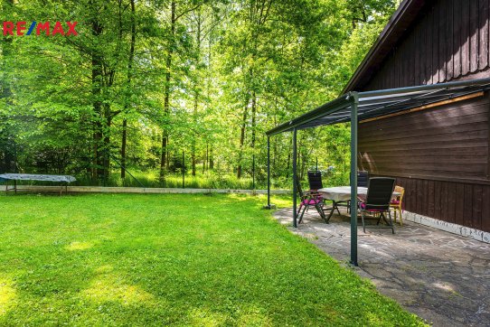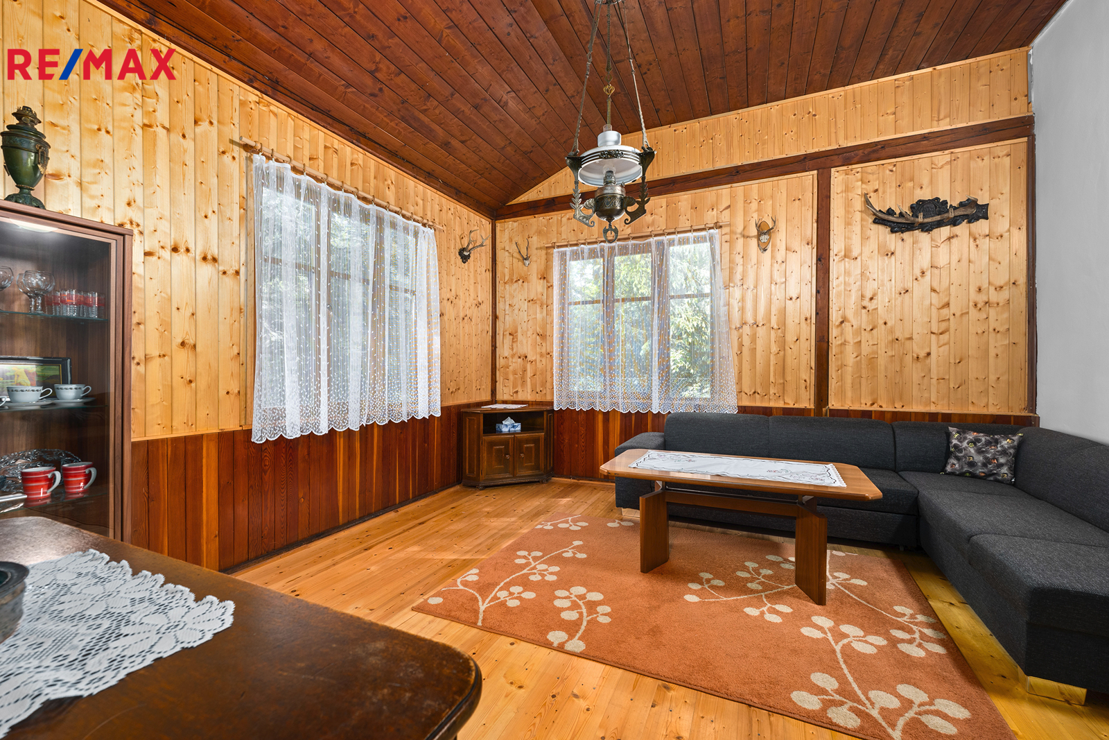 K chatě náleží podíl o velikosti id 1/4 pozemku o velikosti 2 645 m2 - pozemek je hned vedle chaty.