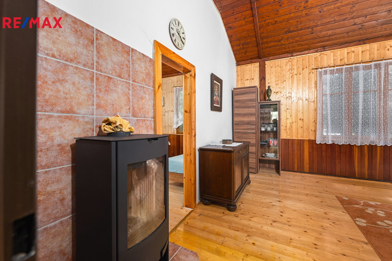 Vytápění je řešeno krbovými kamny.