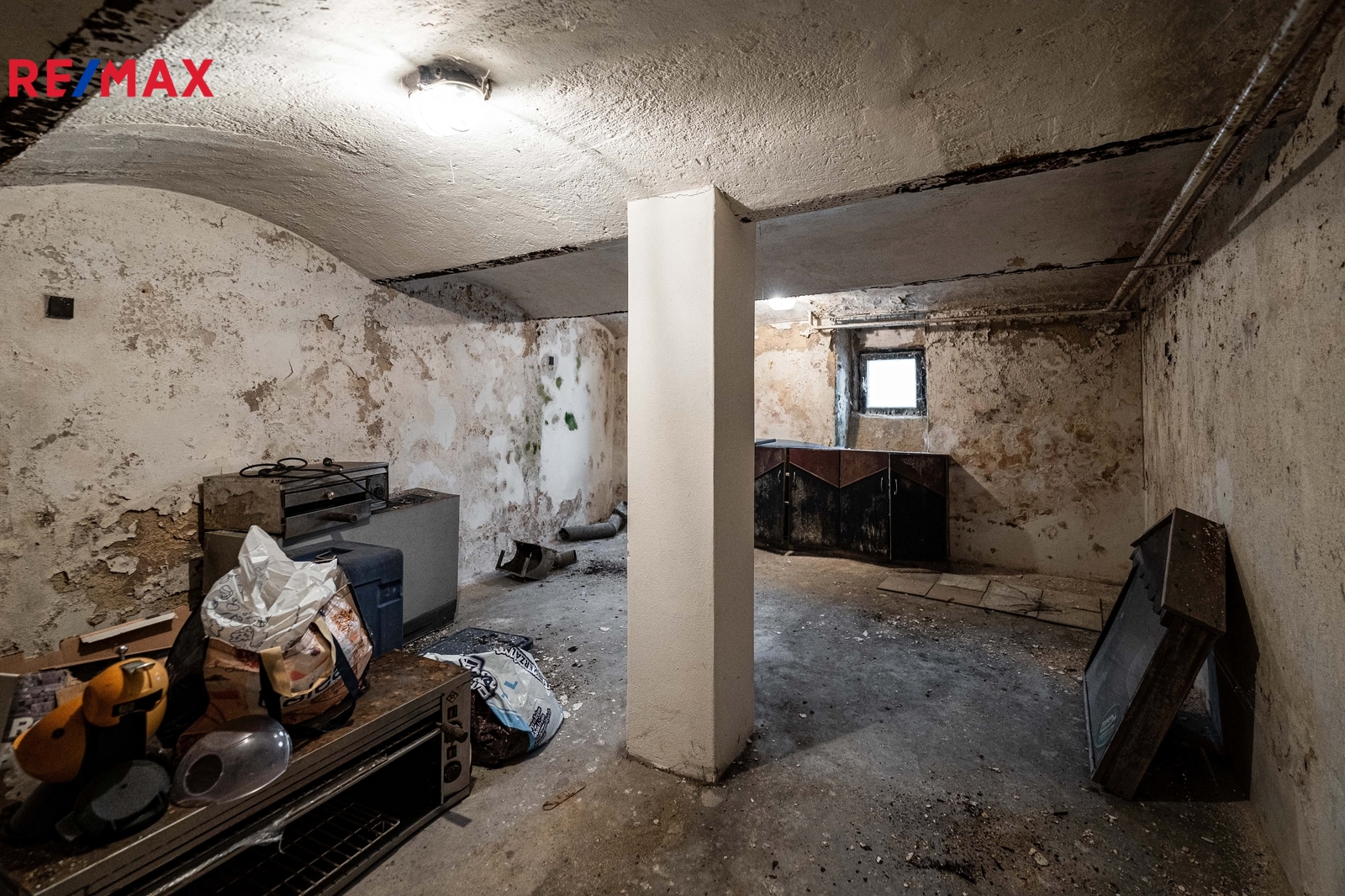 Dům je celopodsklepený, sklepní prostory zahrnují technické zázemí včetně kotle, který zajišťuje vytápění - aktuálně podlahové vytápění baru i dalších místností pomocí radiátorů. Sklep je členitý a zahrnuje možnost rozdělit jej na 7 samostatných sklepních kójí pro každou bytovou jednotku.