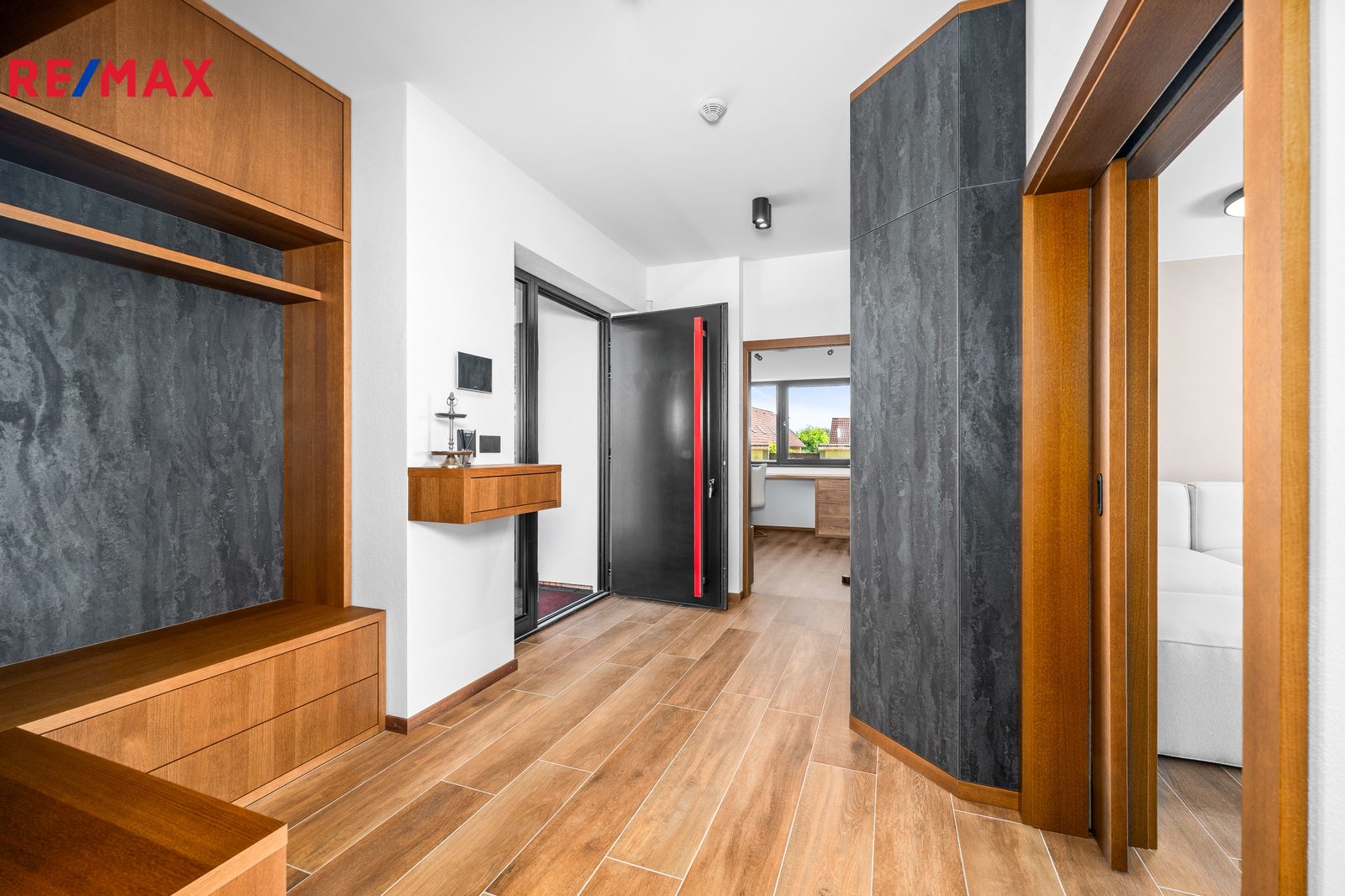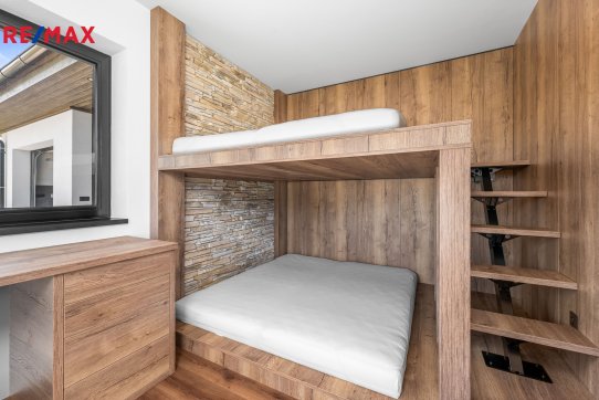 Nemovitost se prodává včetně nadstandardního, velice kvalitního vybavení: kuchyňská linka se spotřebiči, na míru zhotovený dřevěný nábytek (vestavné šatní skříně v chodbě, úložný systém ve spíži a šatně, koupelnový nábytek, předsíňová stěna, patrová postel vč. stolu a skříně v pokoji, skříně v garáži aj.). V domě zůstane i další vybavení, které je vidět na fotografiích včetně osvětlení.