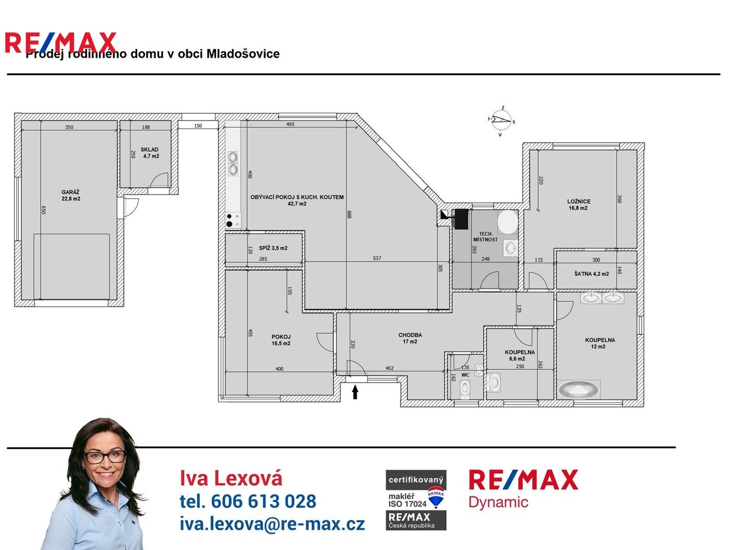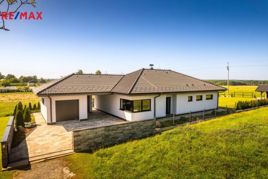 Nabízíme k prodeji nadstandardně provedenou, zatím neobývanou novostavbu přízemního rodinného domu v obci Mladošovice, vzdálené 9 km od Třeboně a 6,5 km z Borovan.