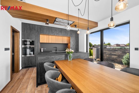 Tento rodinný dům nebyl primárně stavěn na prodej, byl kladen důraz na kvalitní provedení i vybavení, což je jeho hlavní předností. Další výhodou je umístění na úplném okraji zástavby s výhledem do otevřené krajiny.