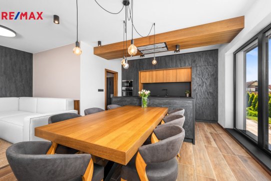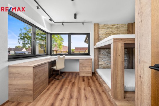 Nemovitost se prodává včetně nadstandardního, velice kvalitního vybavení: kuchyňská linka se spotřebiči, na míru zhotovený dřevěný nábytek (vestavné šatní skříně v chodbě, úložný systém ve spíži a šatně, koupelnový nábytek, předsíňová stěna, patrová postel vč. stolu a skříně v pokoji, skříně v garáži aj.). V domě zůstane i další vybavení, které je vidět na fotografiích včetně osvětlení.