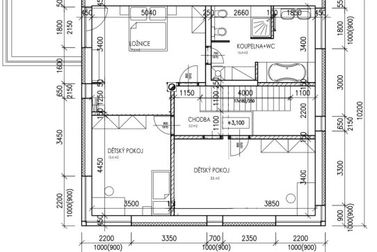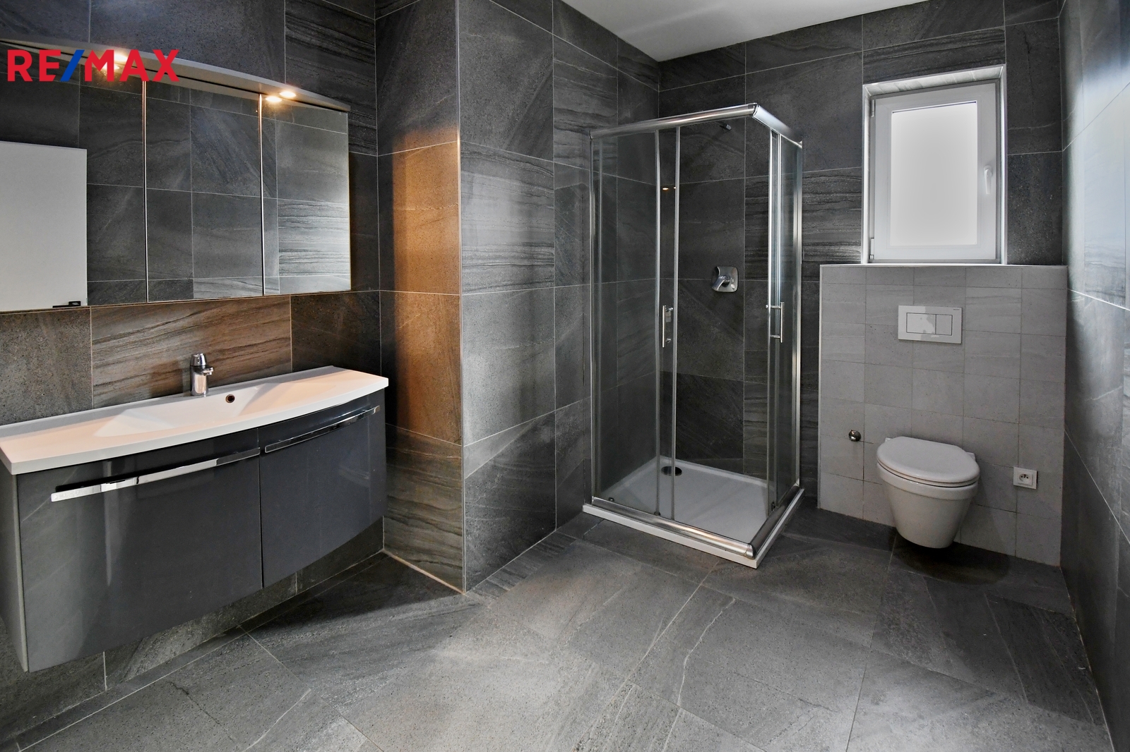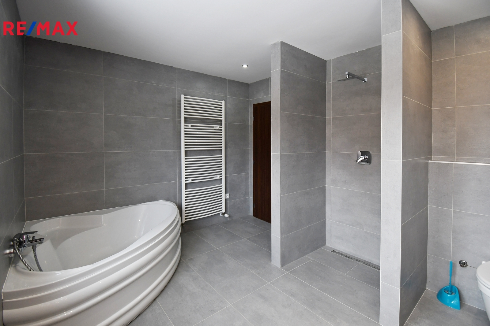 V patře se nachází tři samostatné pokoje, přičemž jeden z nich je koncipován jako větší hlavní ložnice se vstupem do koupelny, což dodává bydlení příjemný nadstandard a více soukromí. Dvě další místnosti jsou ideální jako dětské pokoje, pokoj pro hosty nebo pracovna. V patře je také druhá, velmi prostorná koupelna, která disponuje sprchovým koutem, vanou i toaletou – ideální pro vícečlennou domácnost nebo situace, kdy se ráno všichni chystají současně.