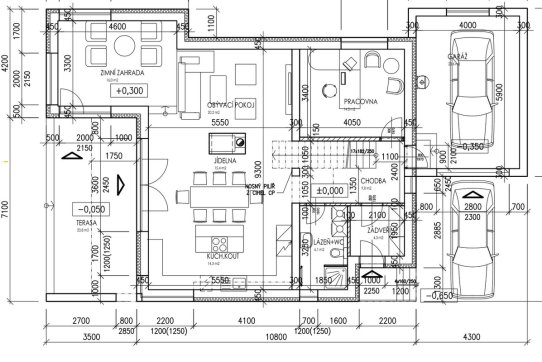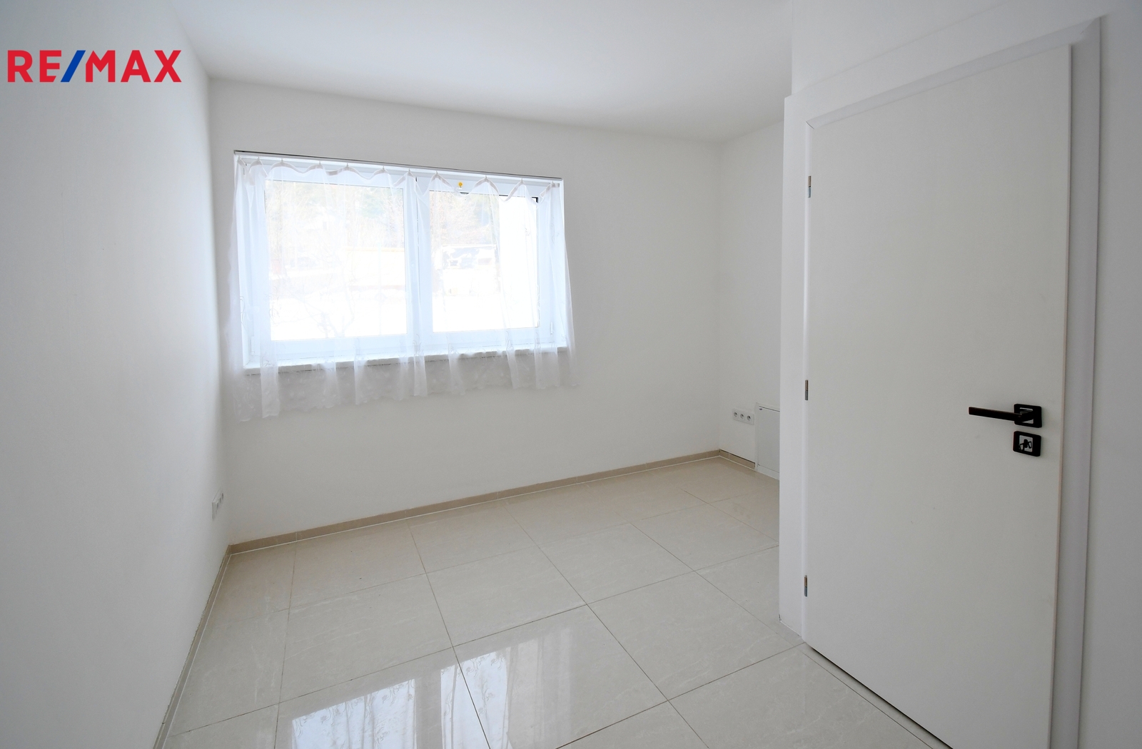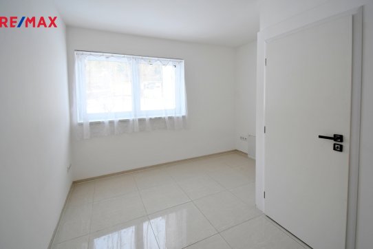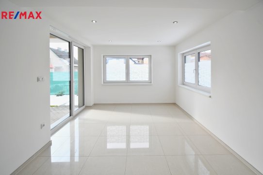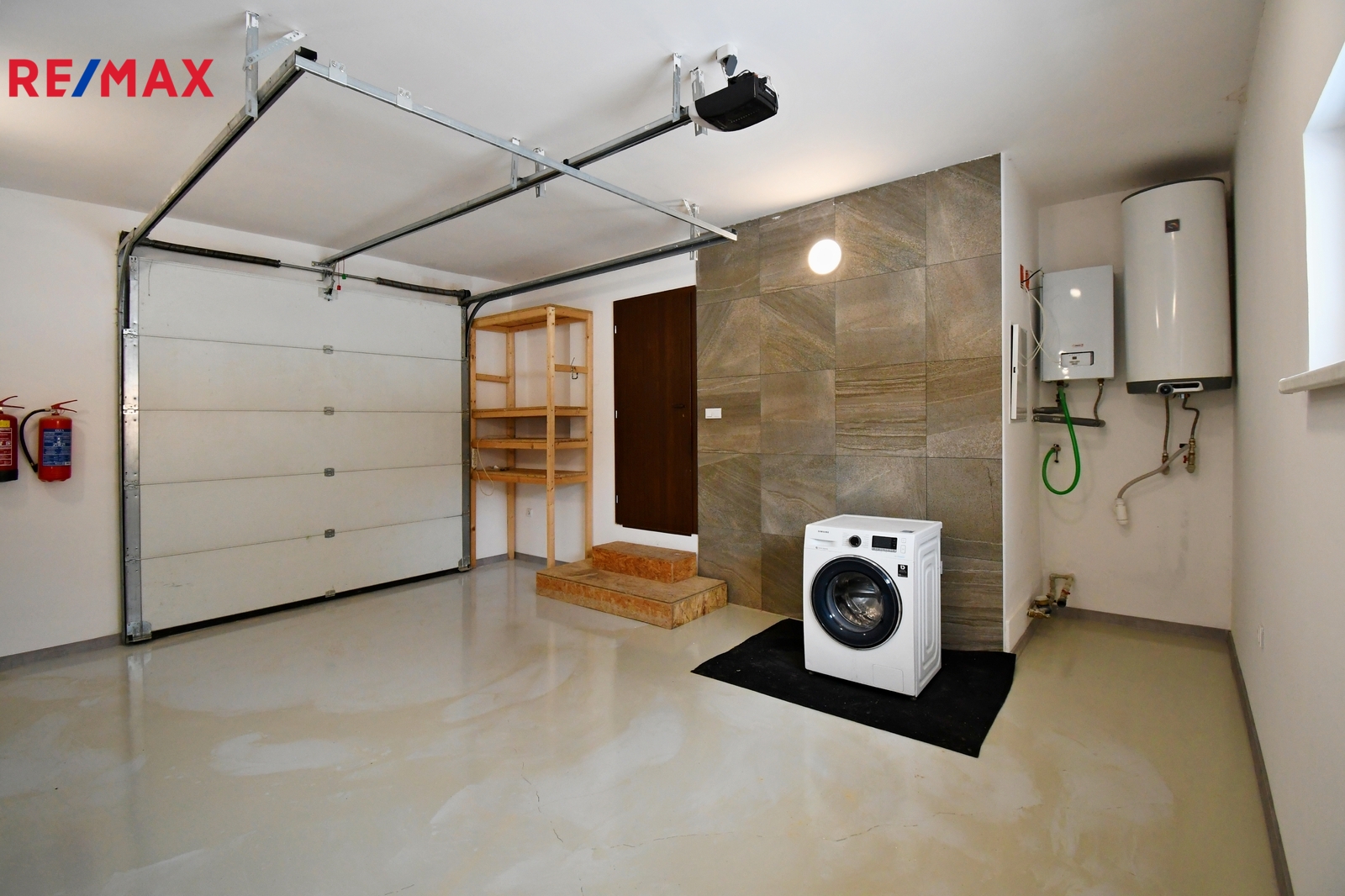Dále se v přízemí nachází samostatný pokoj (skvěle využitelný jako pracovna, pokoj pro hosty nebo pokoj pro člena rodiny, který preferuje bydlení bez schodů), koupelna se sprchovým koutem, a velkou praktickou výhodou je i garáž se vstupem přímo do obytné části – komfortní řešení zejména v zimních měsících či při každodenním fungování rodiny.