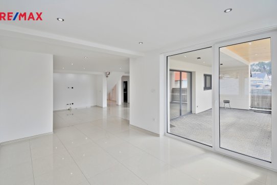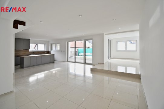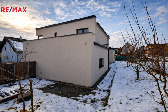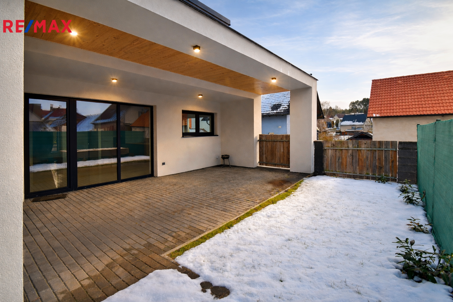 Dům disponuje podlahovou plochou 200 m², nabízí krytou terasu a zahradu o velikosti cca 200 m², ideální pro relax, dětské hry nebo letní grilování. Celkově působí velmi vzdušně díky velkým proskleným plochám, které zároveň přivádějí do interiéru dostatek denního světla.