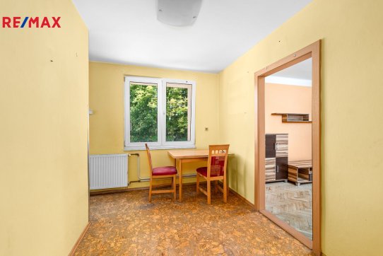 Byt je v původním stavu, vyklizen a připraven k rekonstrukci dle představ nových majitelů. Dům byl před několika lety zateplen a byla vyměněná plastová okna. Vytápění je řešené vlastním elektrickým kotlem umístěném ve sklepě (se spínačem v bytě) s rozvody do radiátorů a ohřev vody je el. bojlerem v koupelně.