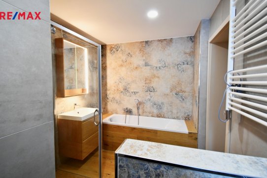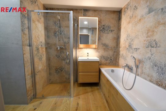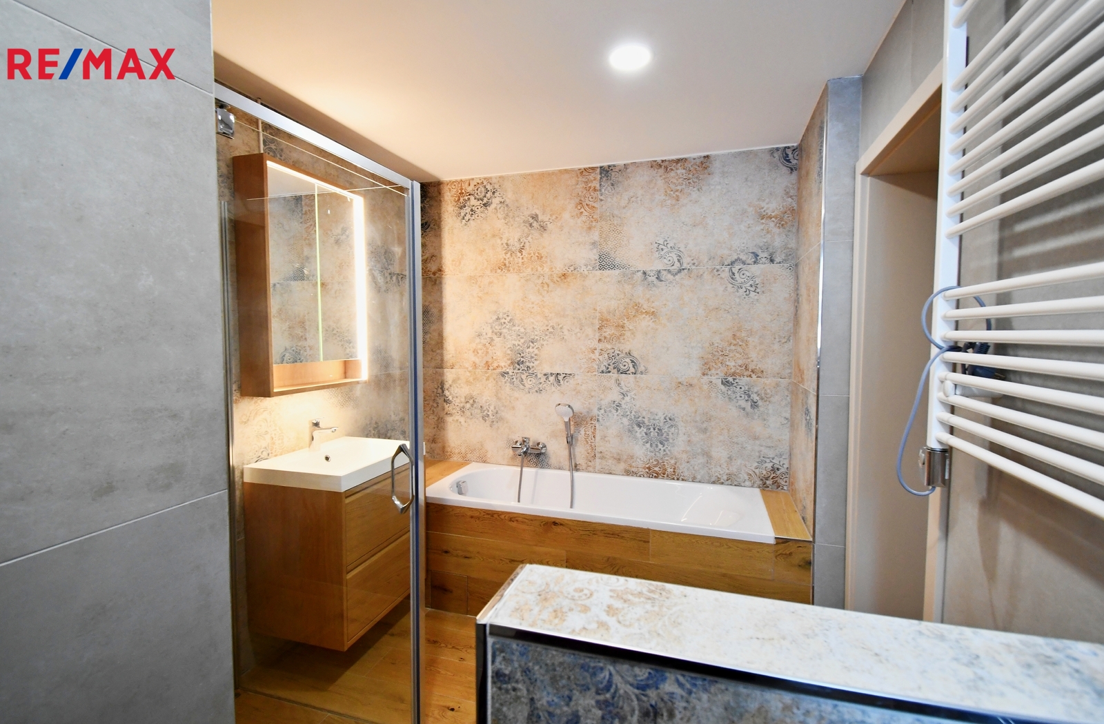 V koupelně oceníte kombinaci sprchového koutu i vany – ideální pro každodenní provoz i relax. K bytu je možnost užívání společné zahrady s druhým bytem v domě.