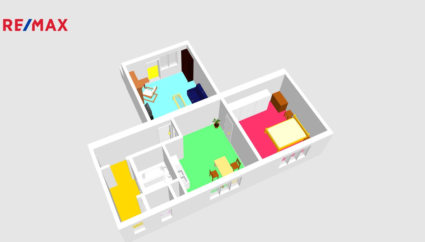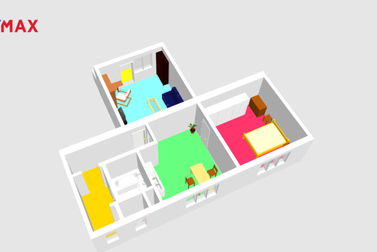 Byt o celkové podlahové ploše 67 m² (včetně balkonu a sklepa) je situován ve 2. nadzemním podlaží zděného domu a prošel částečnou rekonstrukcí.