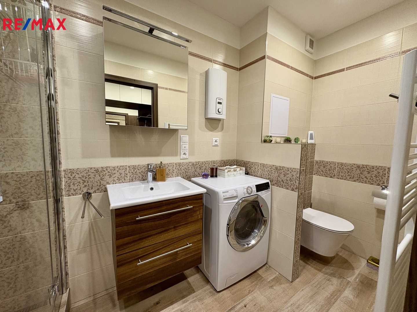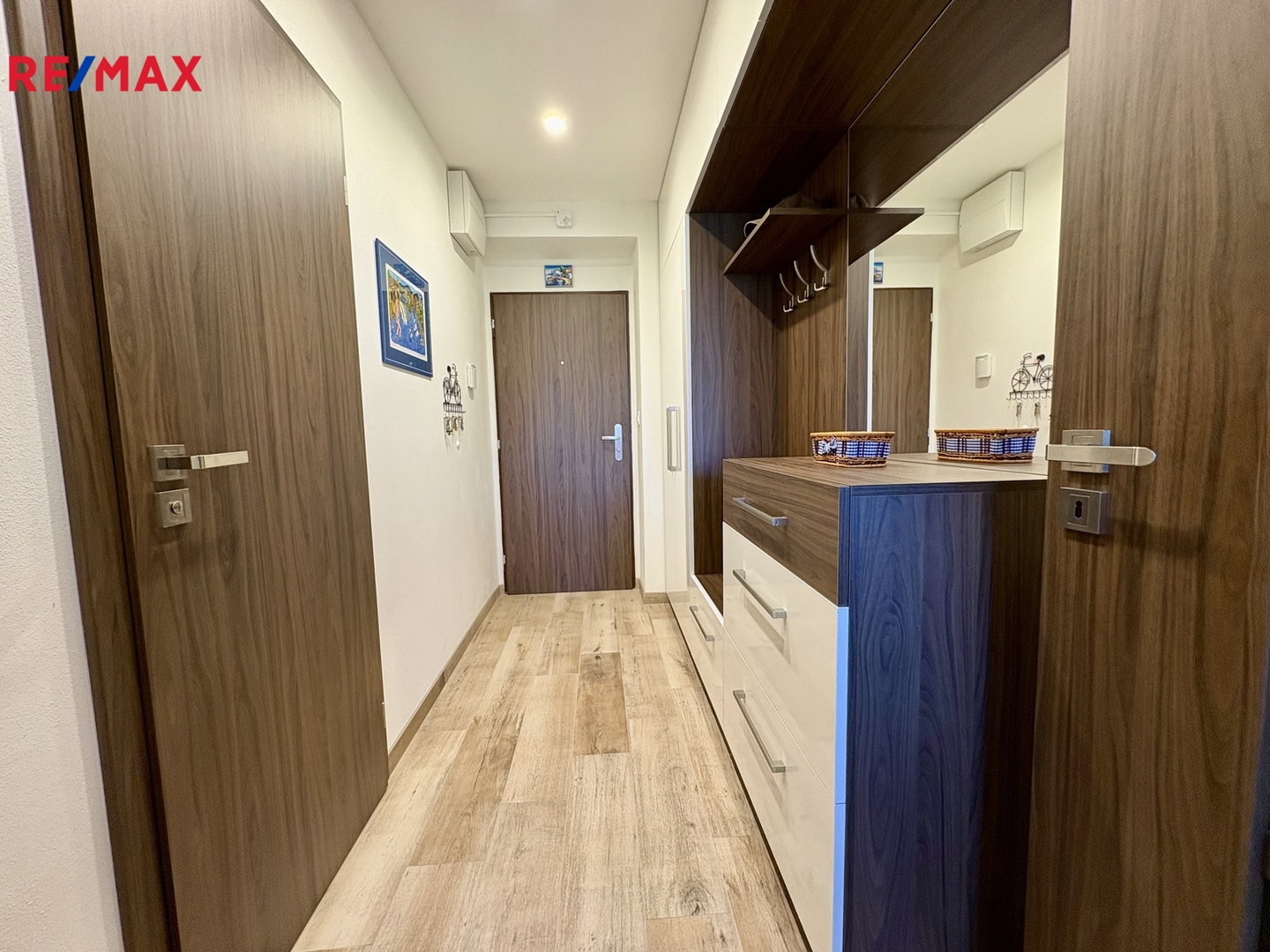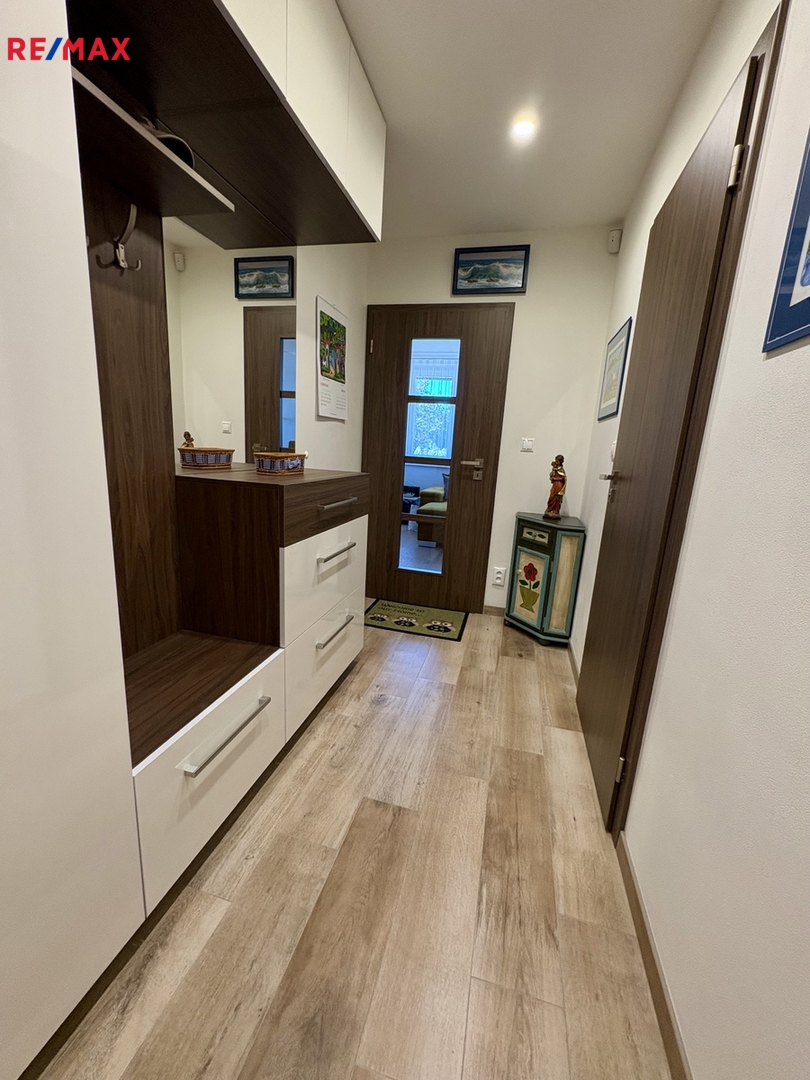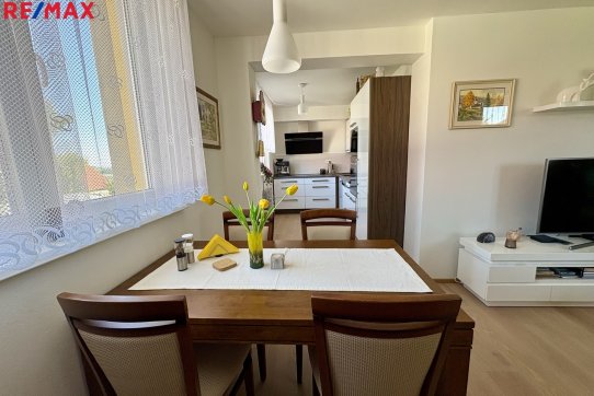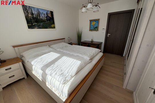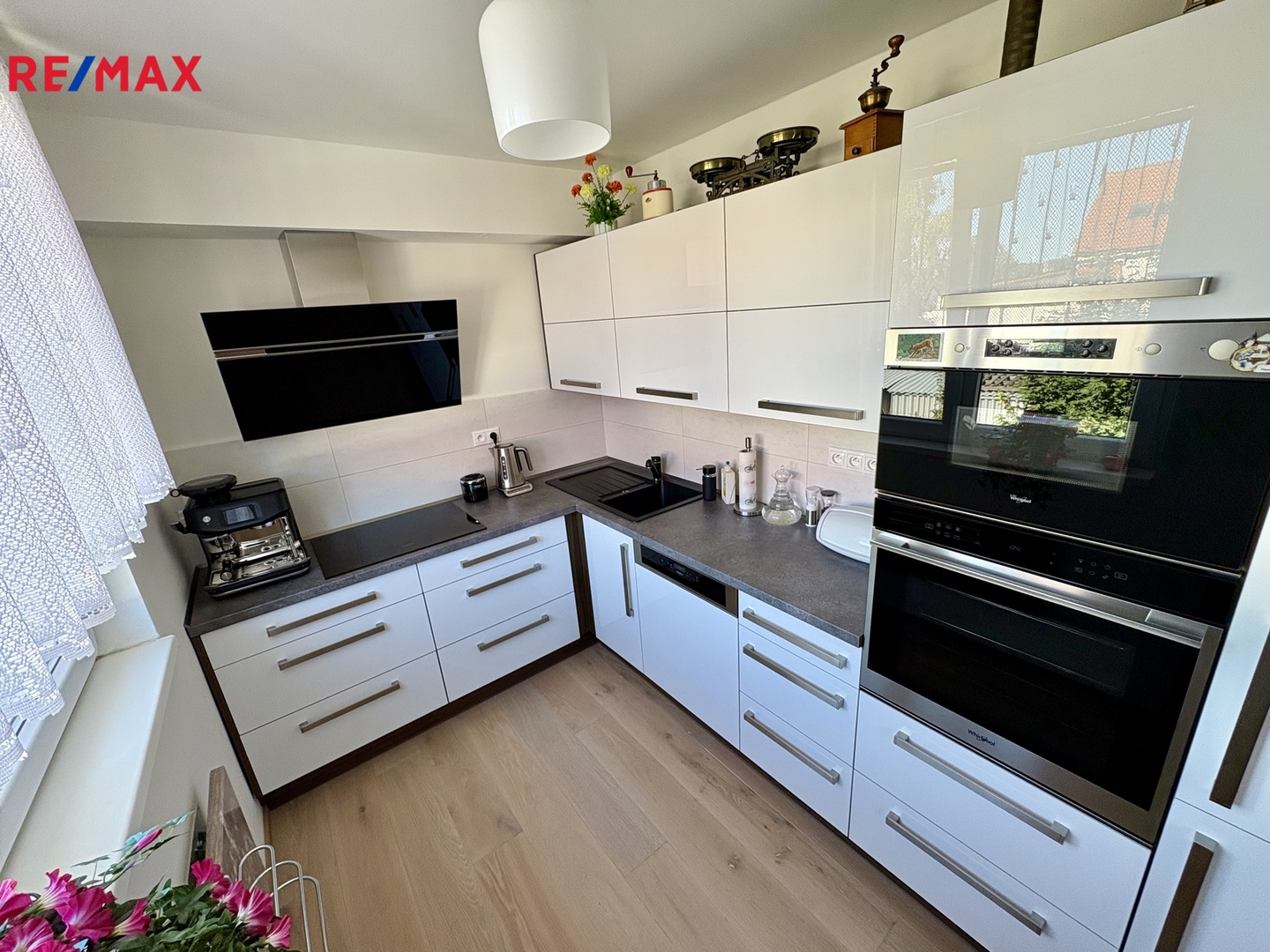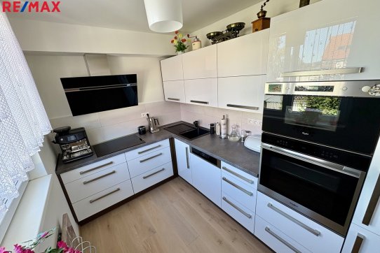 Jedinečná nabídka prodeje bytu 2 + kk po velmi zdařilé kompletní rekonstrukci s celkovou výměrou 52 m² a okolní travnatou plochou s podílem k bytu, parkování. Byt dispozičně nabízí kuchyň s kuchyňskou linkou na míru do písmene L a elektrospotřebiči ( indukční varná deska, digestoř, mikrovlnná trouba, pečící trouba, vestavěná myčka a vestavěná lednice) vše dokonale sladěno. Dále je zde, obývací pokoj s jídelním koutem, kde je umístěn rohový krb na biolíh, který v chladnějším počasí dodá dostatek tepla či jen přispěje k příjemné atmosféře a úsporě za energii. Hlavní vytápění bytu zajišťují topné přírodní kameny Eurotopin. Z obývacího pokoje je vstup do samostatného pokoj nyní ložnice a dále do vstupní a spojovací chodby, kde je v celé délce předsíňová stěna vyhotovená na míru s dostatkem úložného prostoru. Koupelna se sprchovým koutem, umyvadlem a toaletou zaručuje funkčnost každodenního užívání. Umístěn je tu i průtokový ohřívač a najde se zde místo, i na pračku.
