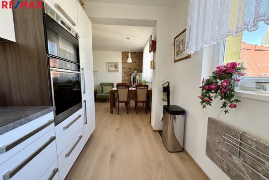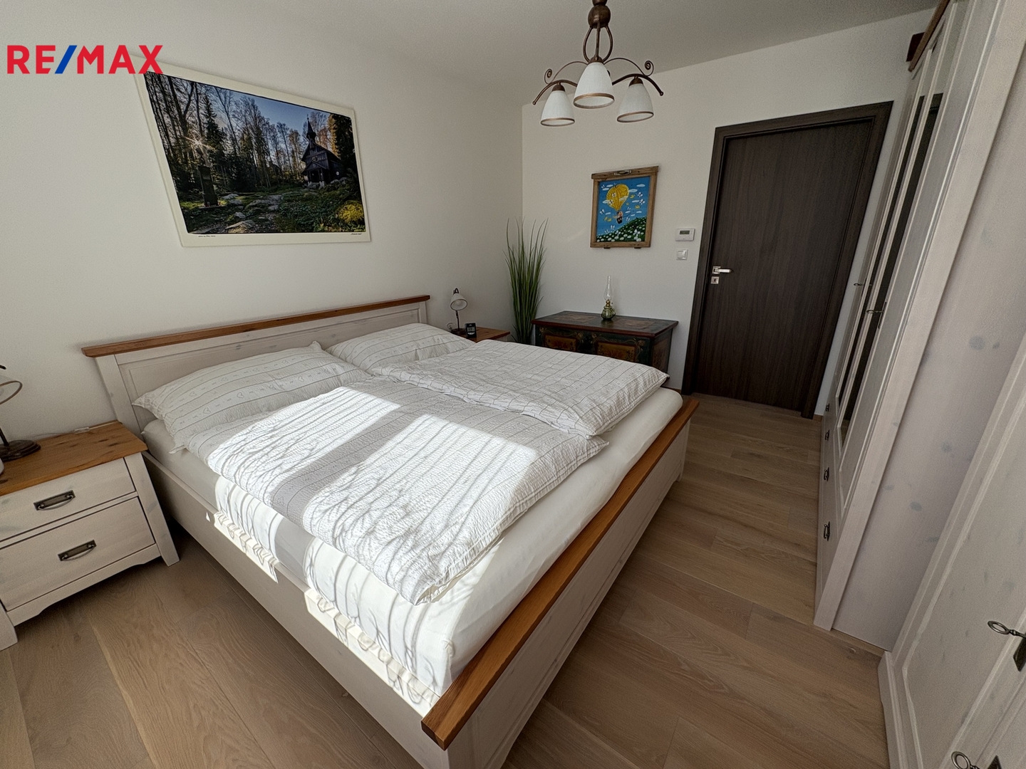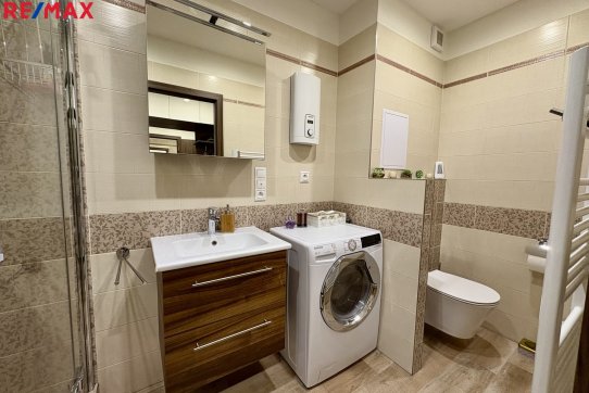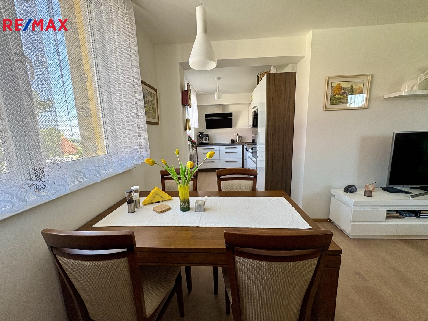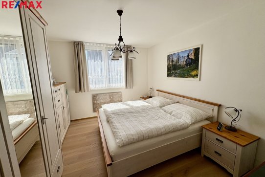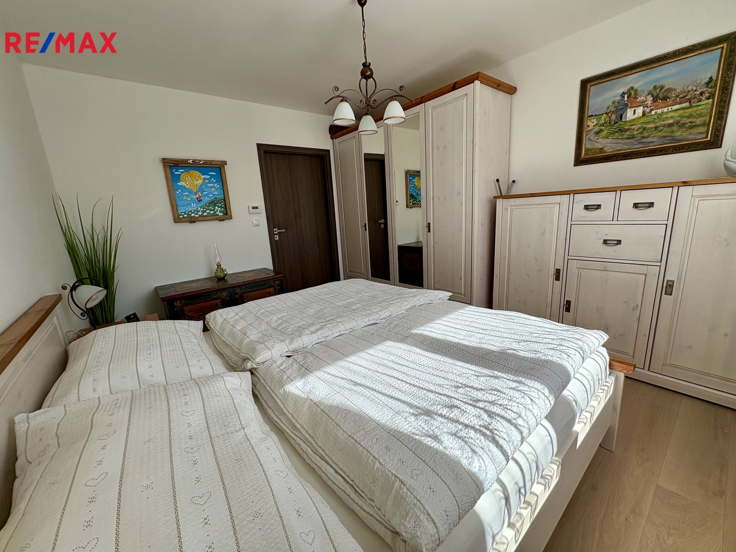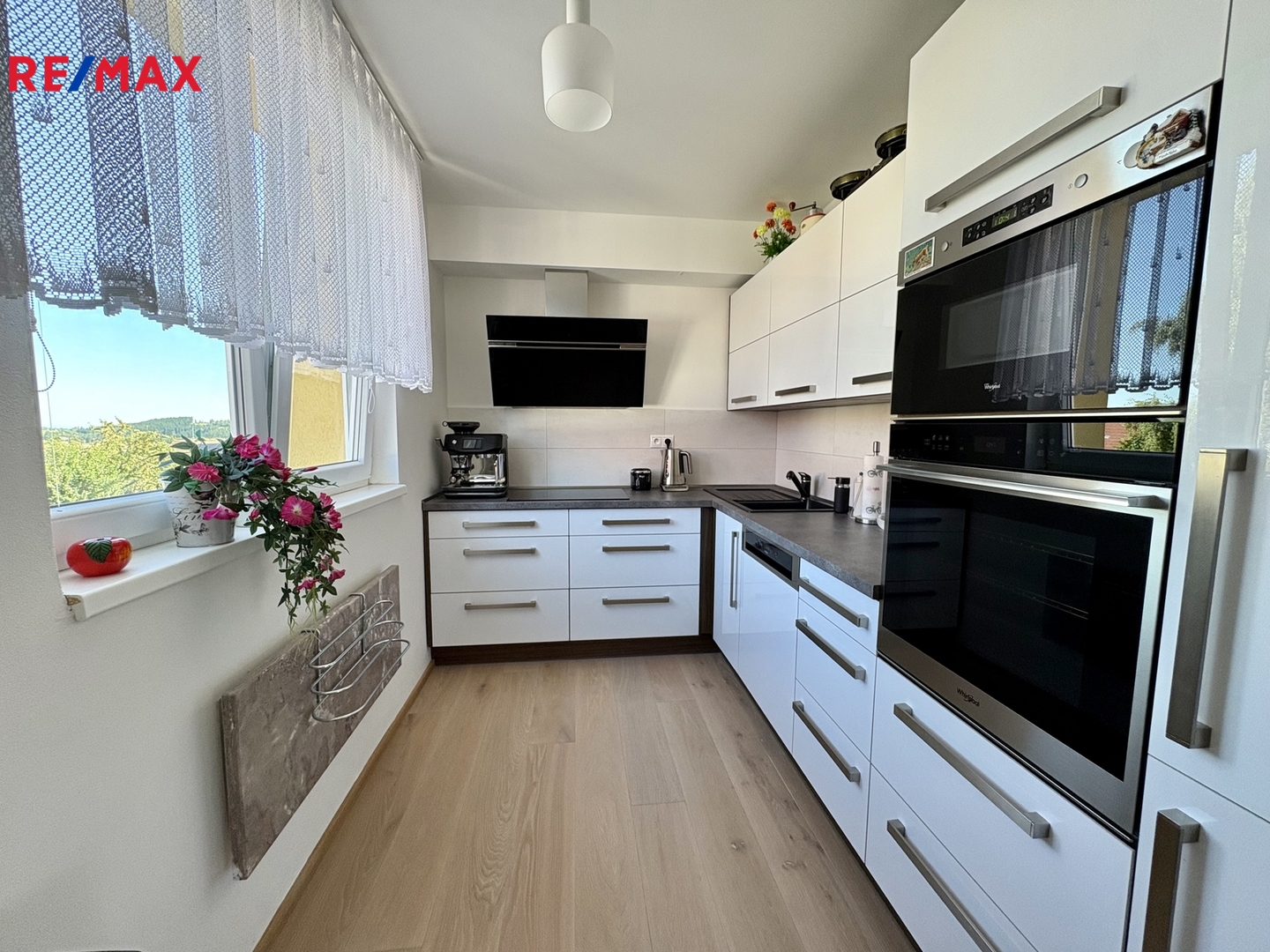 Jedinečná nabídka prodeje bytu 2 + kk po velmi zdařilé kompletní rekonstrukci s celkovou výměrou 52 m² a okolní travnatou plochou s podílem k bytu, parkování. Byt dispozičně nabízí kuchyň s kuchyňskou linkou na míru do písmene L a elektrospotřebiči ( indukční varná deska, digestoř, mikrovlnná trouba, pečící trouba, vestavěná myčka a vestavěná lednice) vše dokonale sladěno. Dále je zde, obývací pokoj s jídelním koutem, kde je umístěn rohový krb na biolíh, který v chladnějším počasí dodá dostatek tepla či jen přispěje k příjemné atmosféře a úsporě za energii. Hlavní vytápění bytu zajišťují topné přírodní kameny Eurotopin. Z obývacího pokoje je vstup do samostatného pokoj nyní ložnice a dále do vstupní a spojovací chodby, kde je v celé délce předsíňová stěna vyhotovená na míru s dostatkem úložného prostoru. Koupelna se sprchovým koutem, umyvadlem a toaletou zaručuje funkčnost každodenního užívání. Umístěn je tu i průtokový ohřívač a najde se zde místo, i na pračku.