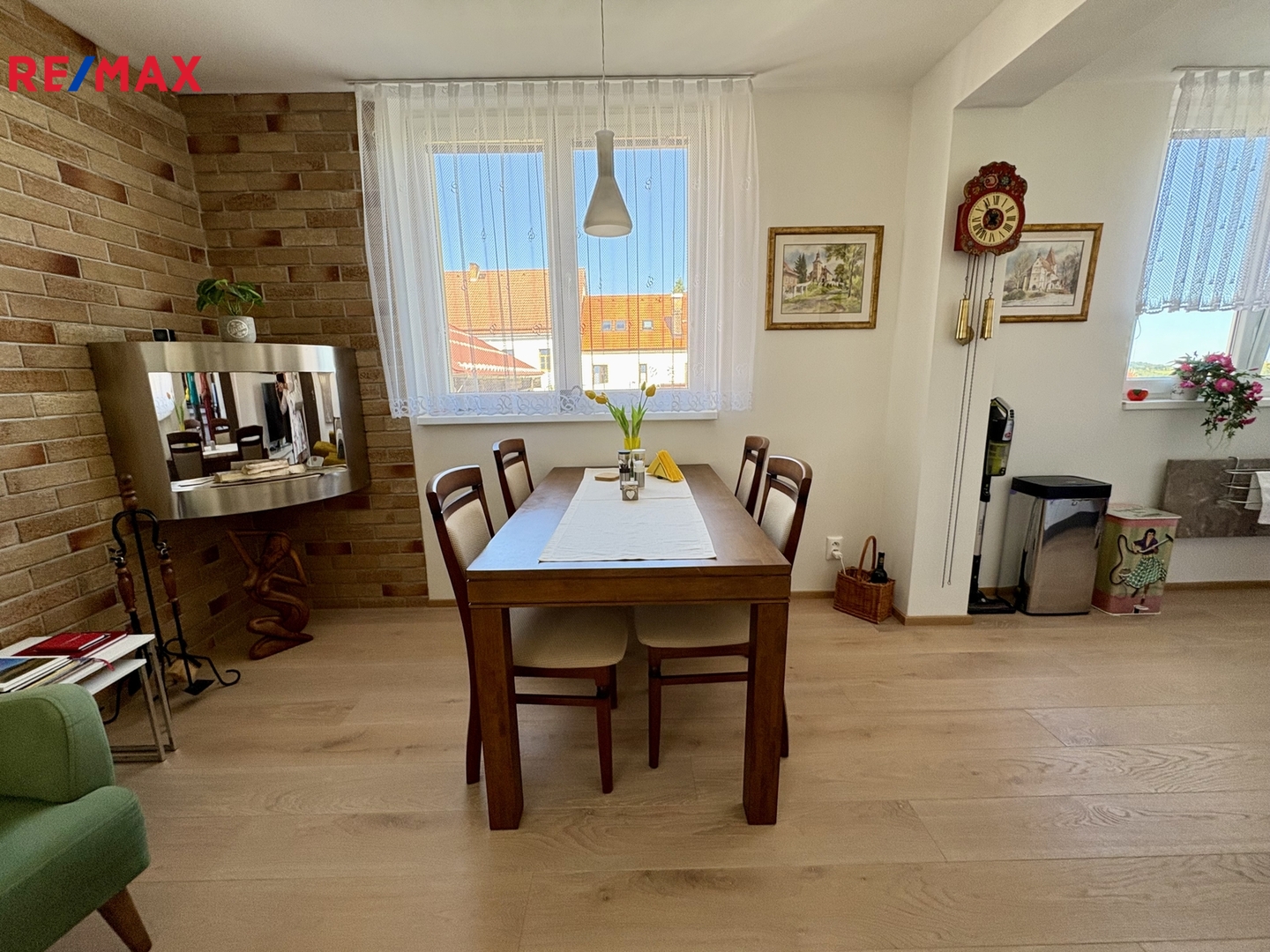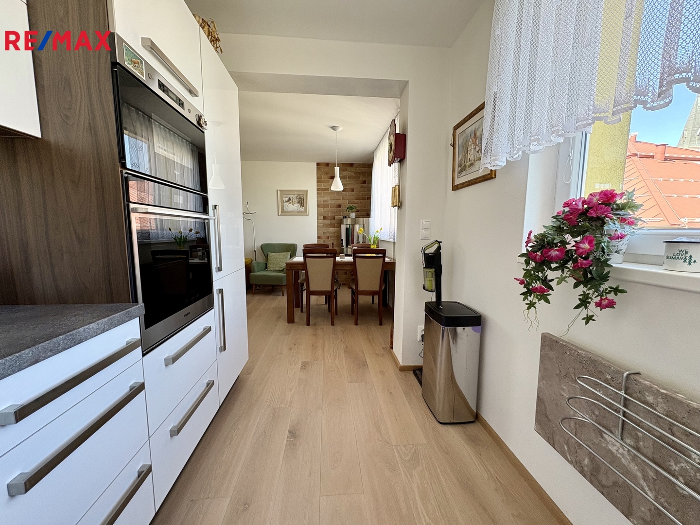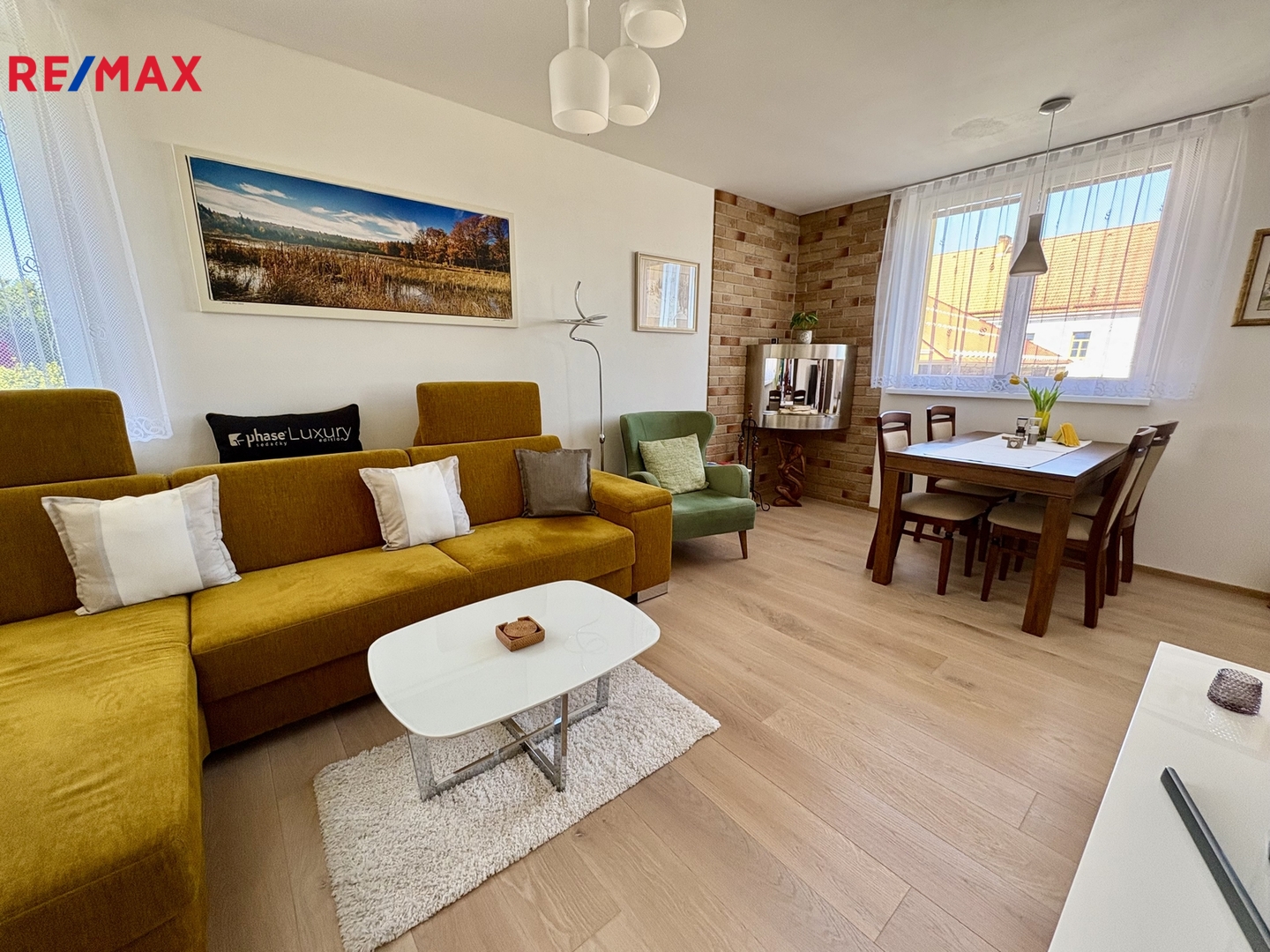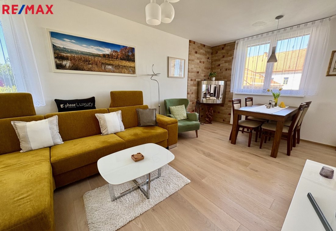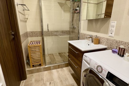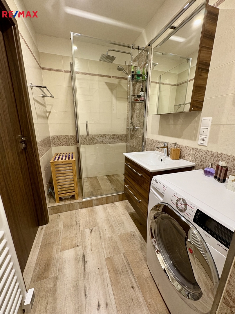 Jedinečná nabídka prodeje bytu 2 + kk po velmi zdařilé kompletní rekonstrukci s celkovou výměrou 52 m² a okolní travnatou plochou s podílem k bytu, parkování. Byt dispozičně nabízí kuchyň s kuchyňskou linkou na míru do písmene L a elektrospotřebiči ( indukční varná deska, digestoř, mikrovlnná trouba, pečící trouba, vestavěná myčka a vestavěná lednice) vše dokonale sladěno. Dále je zde, obývací pokoj s jídelním koutem, kde je umístěn rohový krb na biolíh, který v chladnějším počasí dodá dostatek tepla či jen přispěje k příjemné atmosféře a úsporě za energii. Hlavní vytápění bytu zajišťují topné přírodní kameny Eurotopin. Z obývacího pokoje je vstup do samostatného pokoj nyní ložnice a dále do vstupní a spojovací chodby, kde je v celé délce předsíňová stěna vyhotovená na míru s dostatkem úložného prostoru. Koupelna se sprchovým koutem, umyvadlem a toaletou zaručuje funkčnost každodenního užívání. Umístěn je tu i průtokový ohřívač a najde se zde místo, i na pračku.