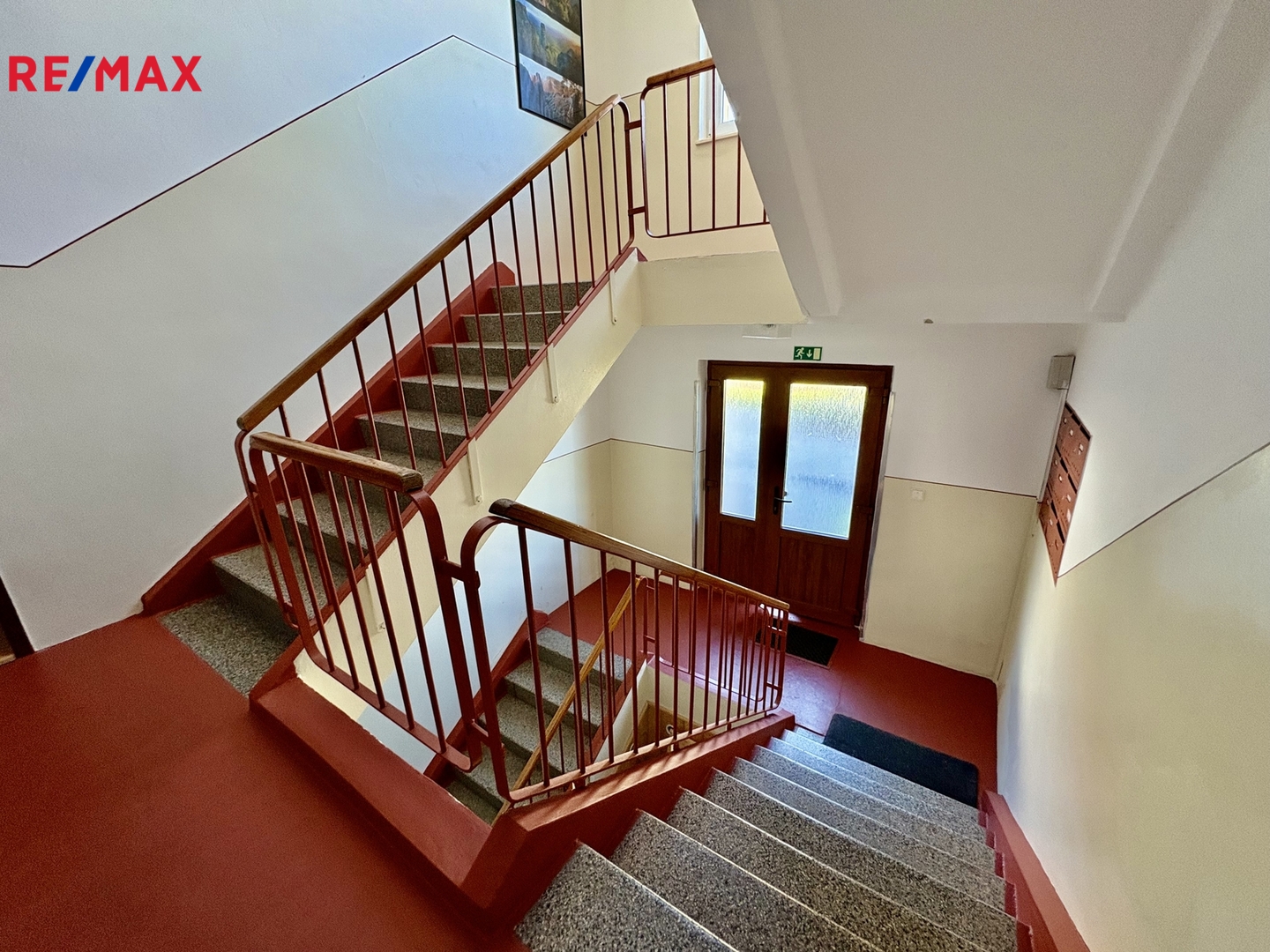 Byt se nachází ve druhém patře bez výtahu. K bytu jsou dva sklepní prostory.