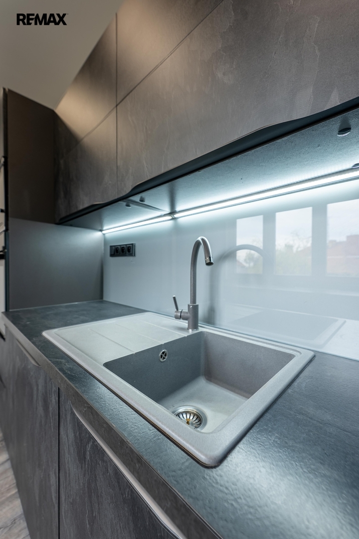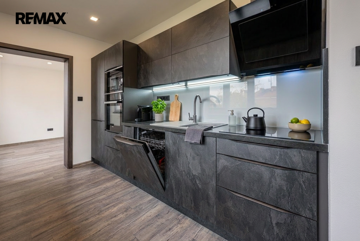 V rámci rekonstrukce byla instalována nová kuchyňská linka, vyměněny podlahy, zrekonstruována koupelna a provedena nová elektroinstalace.