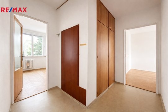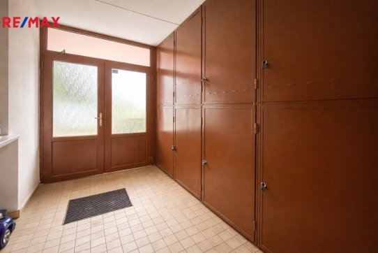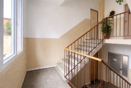 Byt se nachází ve druhém patře pětipodlažního revitalizovaného domu, je ideální volbou pro rodiny s dětmi, které hledají bezpečné a komfortní místo pro život. Na stejném patře hned vedle vstupních dveří se nachází sklepní kóje sloužící k uskladnění věcí. Ve vstupním prostoru domu je druhý menší úložný prostor.