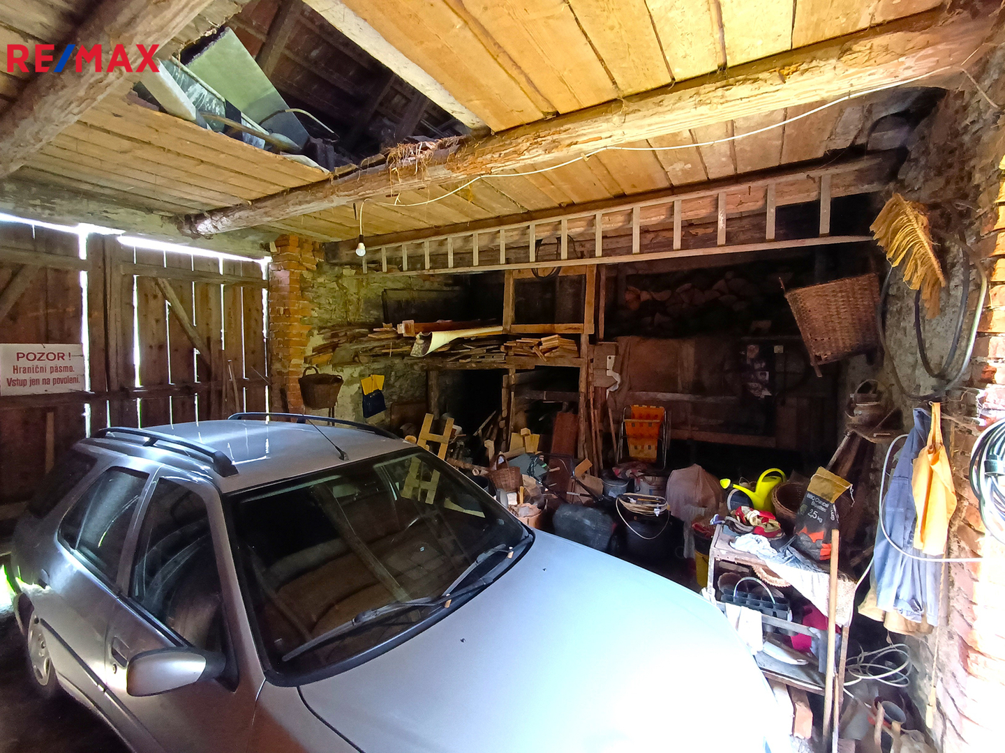 • Stodola: součástí pozemku, aktuálně slouží jako garáž a sklad.