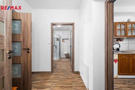 Z průjezdu domu (spojujícího zahradu s hlavním vjezdem do objektu a na pozemek), který může sloužit i jako garáž pro několik automobilů, je vstup do chodby a dále do obou samostatných bytových jednotek. V přízemí se nachází byt s dispozicí 2+1, v 1. patře je byt 3+kk. Prostorná půda nabízí možnost pro vybudování dalšího bytu (vše stavebně technicky připraveno, včetně rozvodů).
