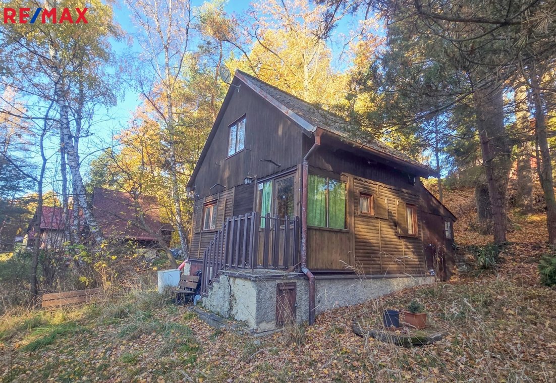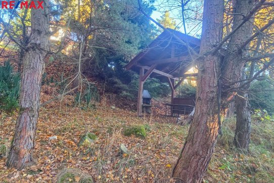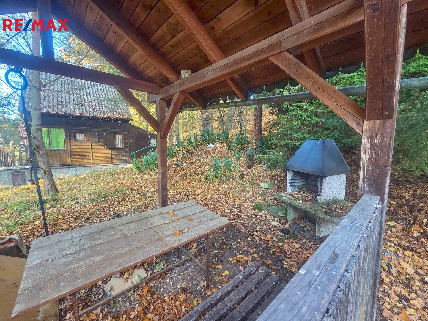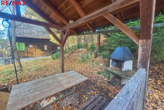 K chatě náleží zahrada o velikosti 335 m2Altán s venkovním krbem se nachází na sousední parcele.