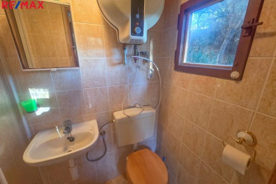 V přízemí chaty se nachází koupelna se sprchovým koutem, WC a umyvadlem (plocha 2 m2); zádveří (2 m2) a obývací pokoj s okny na severozápad (22 m2) s kuchyňským koutem (v lince je sporák připojený na propanbutanovou bombu).