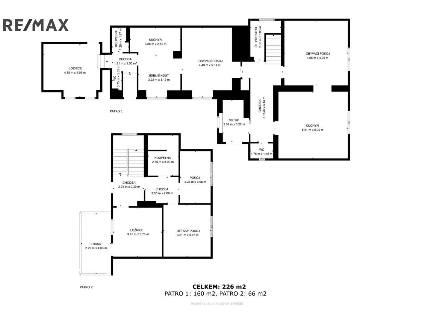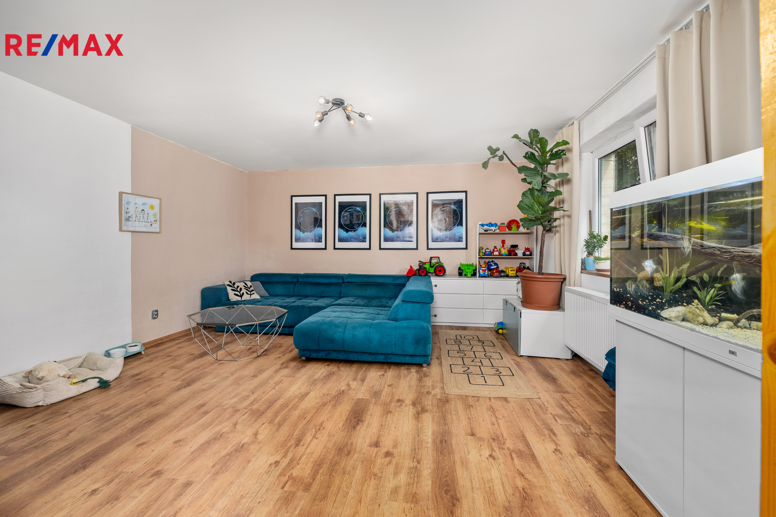 Hlavní byt 4+1 s kuchyní, obývacím pokojem a třemi ložnicemi.