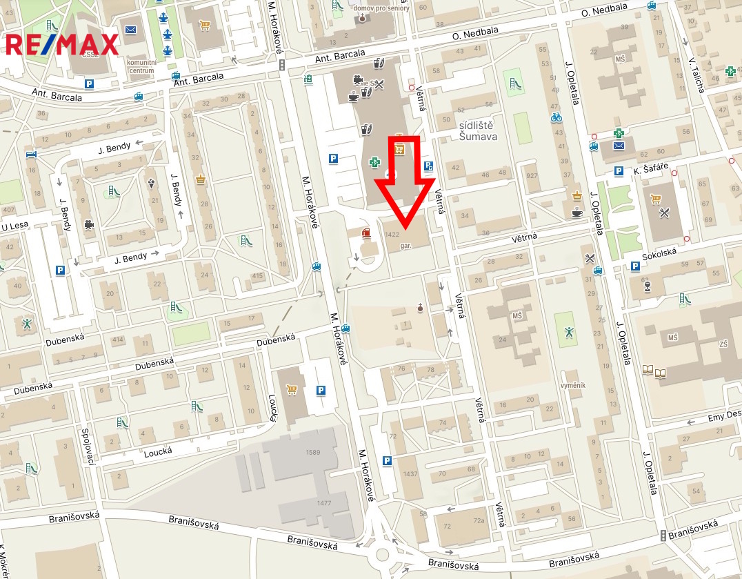 Nabízíme ke koupi garáž umístěnou ve III. nadzemním podlaží (z celkových IV. NP) zděného garážového domu, situovaného na okraji sídliště Šumava na adrese Větrná 1422 (v těsné blízkosti multifunkčního centra 4Dvory).