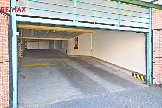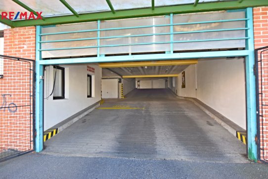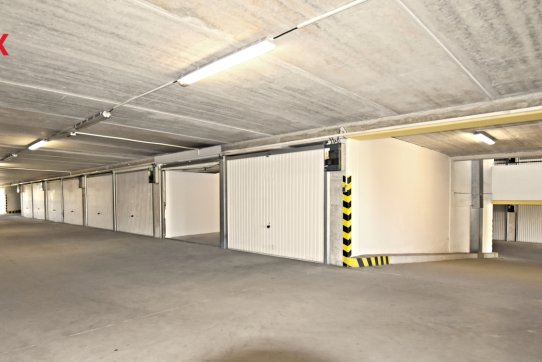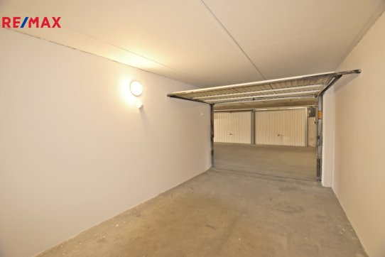 Garáž (osobní vlastnictví) je umístěna ve středové části objektu, má rozměry 2,9 m (š) x 5,3 m (d) a světlou výšku 2,25 m. Rozměr vjezdových vrat do garáže (plechová, výklopná, zn. Hormann) je 2,45 m (š) x 1,9 m (v).
