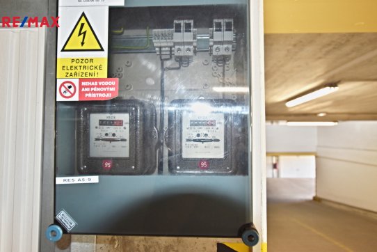 Garáž je připojena na rozvod elektřiny se samostatným měřením, osvětlením a zásuvkou na 230 V.