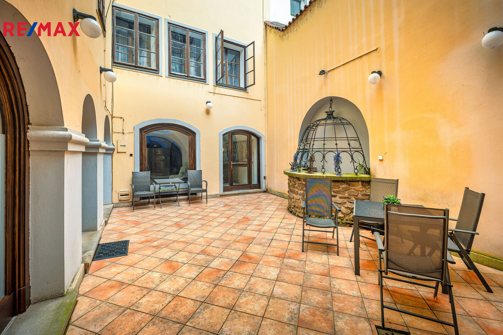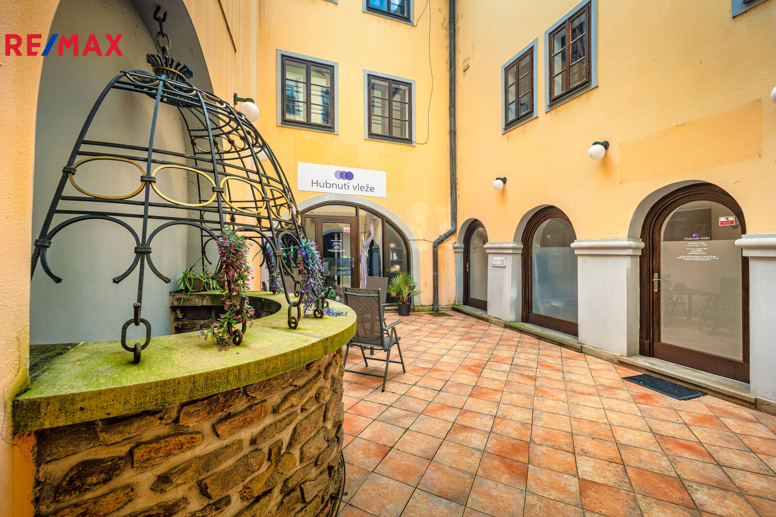 Na dvorku jsou další dvě provozovny. Větší, také s klenutým stropem, má vlastním soc. zařízení a výměru 38 m2, a menší 10 m2. Dvorek je vydlážděn a dominuje mu historická studna.