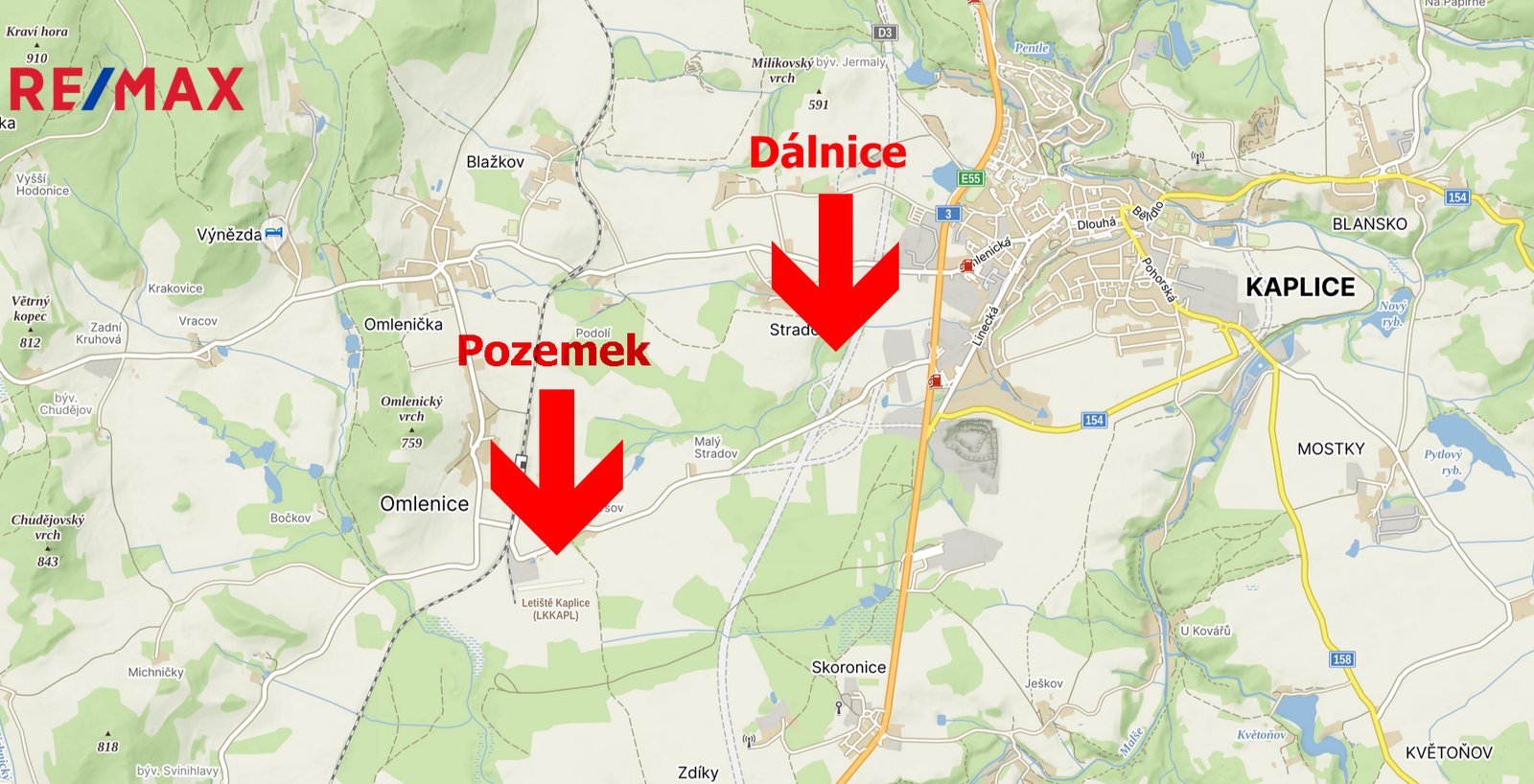 Nabízím k prodeji komerční pozemek v Katastrálním území Omlenice o výměře 40 273 m2, který je vzdálen pouze cca 1 km od sjezdu již budované dálnice D3. Město Kaplice je vzdálené cca 4 km. Pozemek je dle platného územního plánu určen k výstavbě. Je veden jako plocha pro výrobu a skladování – drobná výroba a výrobní služby.