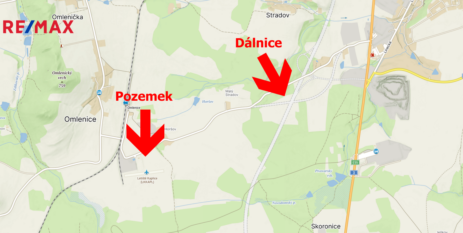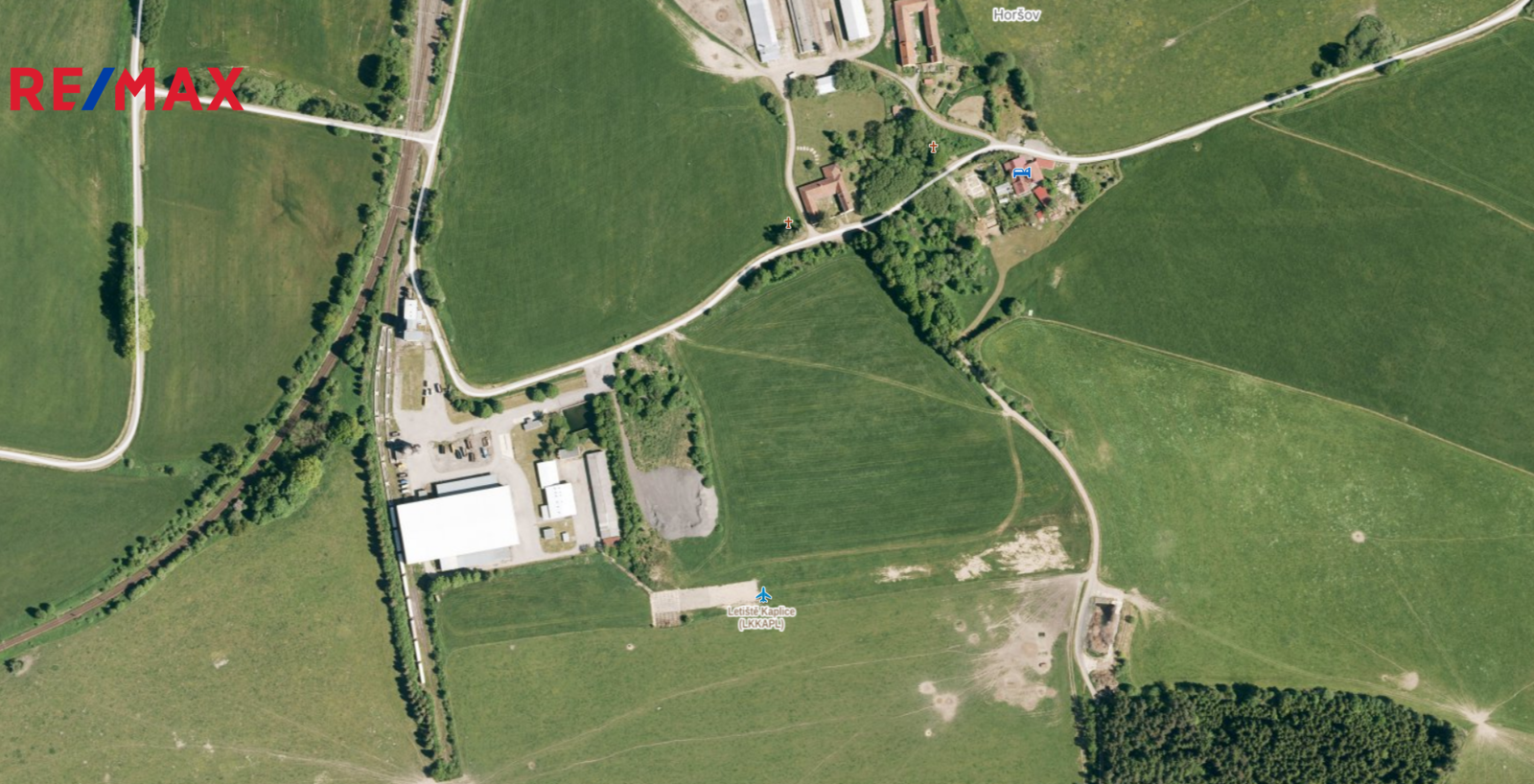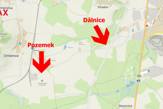 Nedaleko pozemku je i železnice a letiště pro sportovní létající zařízení (letiště SLZ)