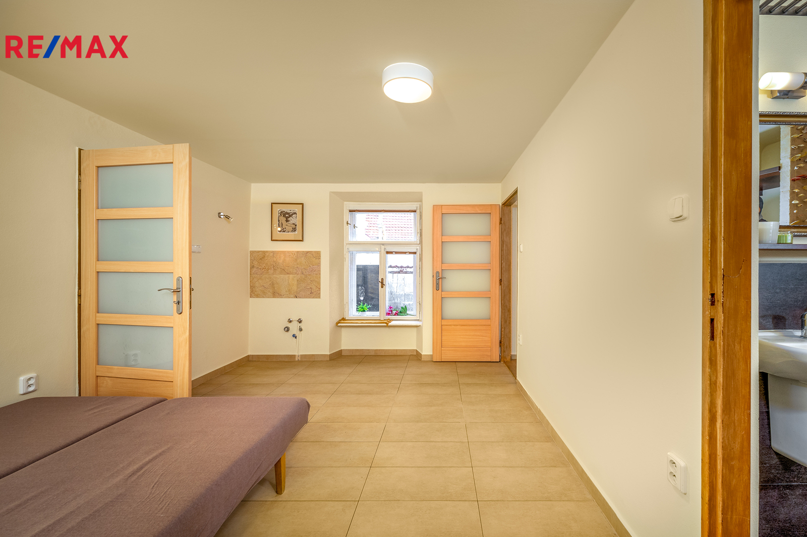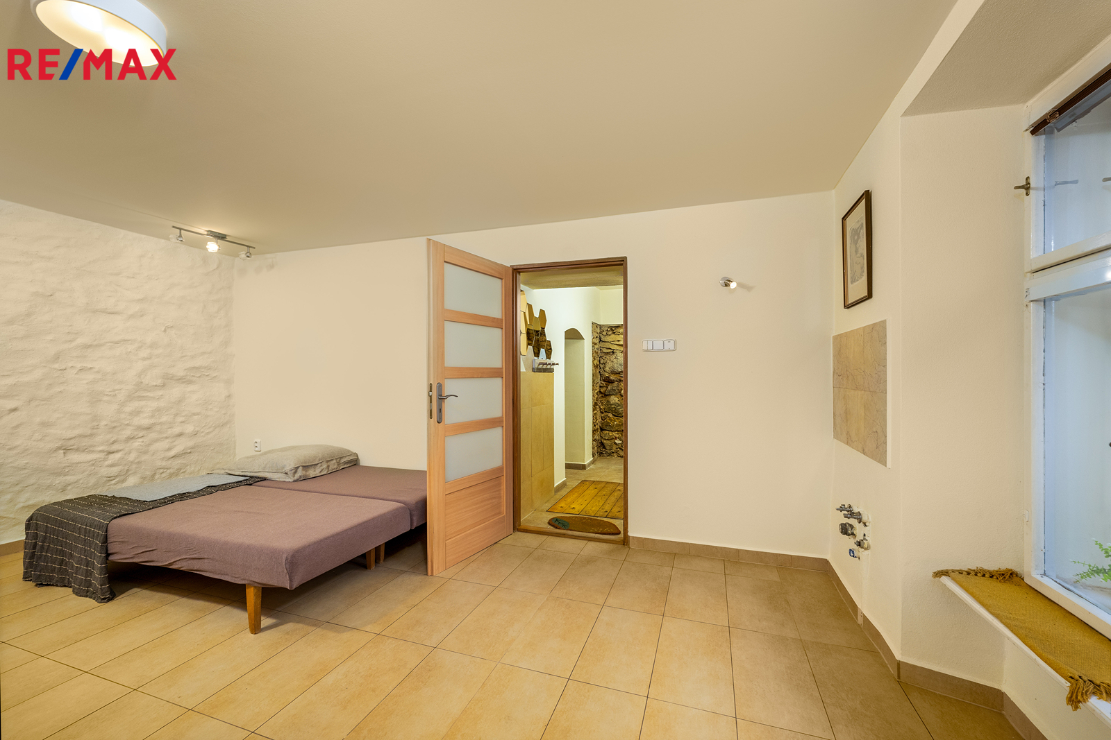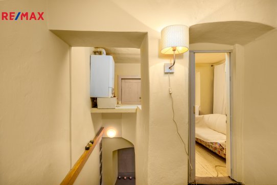 Z haly je vstup do prostorného sklepa a po schodišti také do prvního patra domu.
