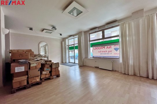 Interiér se vyznačuje prosklenou galerií, díky které je prostor dostatečně prosvětlený a ideální pro vystavení zboží či reklamy. Při vstupu do prostor se nachází velký vstupní prostor, který slouží jako galerie, a dále zde najdete několik menších místností, které mohou být využity jako sklady či kanceláře. K dispozici je také zázemí v podobě toalety a kuchyňky, což zajišťuje pohodlí pro pracovníky.