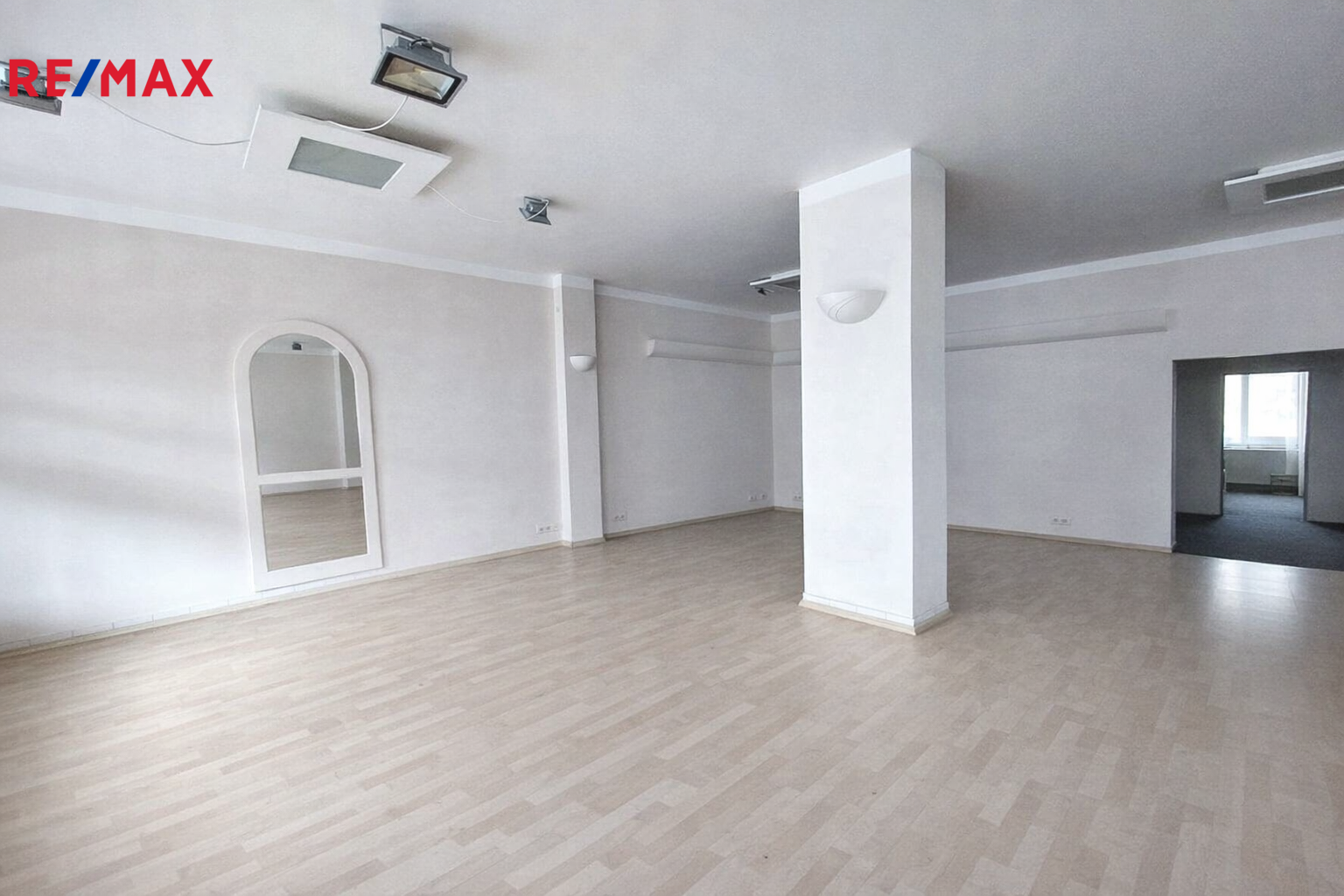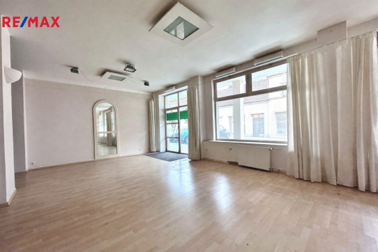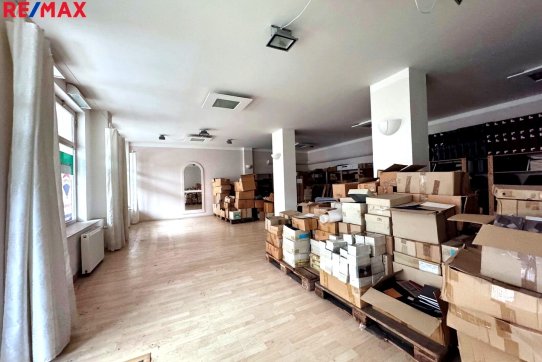 Interiér se vyznačuje prosklenou galerií, díky které je prostor dostatečně prosvětlený a ideální pro vystavení zboží či reklamy. Při vstupu do prostor se nachází velký vstupní prostor, který slouží jako galerie, a dále zde najdete několik menších místností, které mohou být využity jako sklady či kanceláře. K dispozici je také zázemí v podobě toalety a kuchyňky, což zajišťuje pohodlí pro pracovníky.