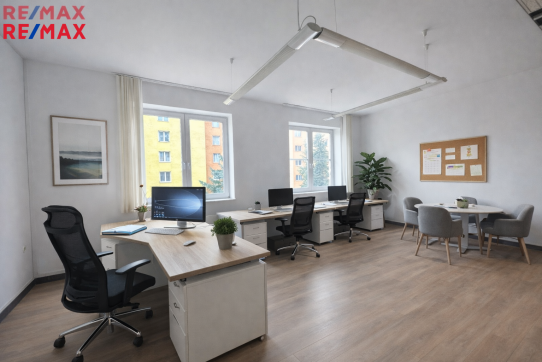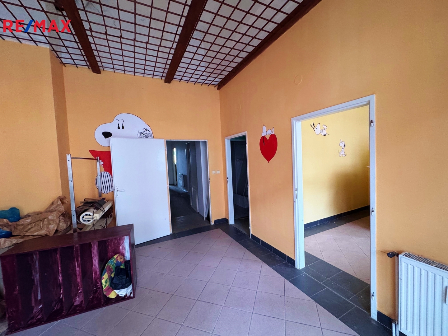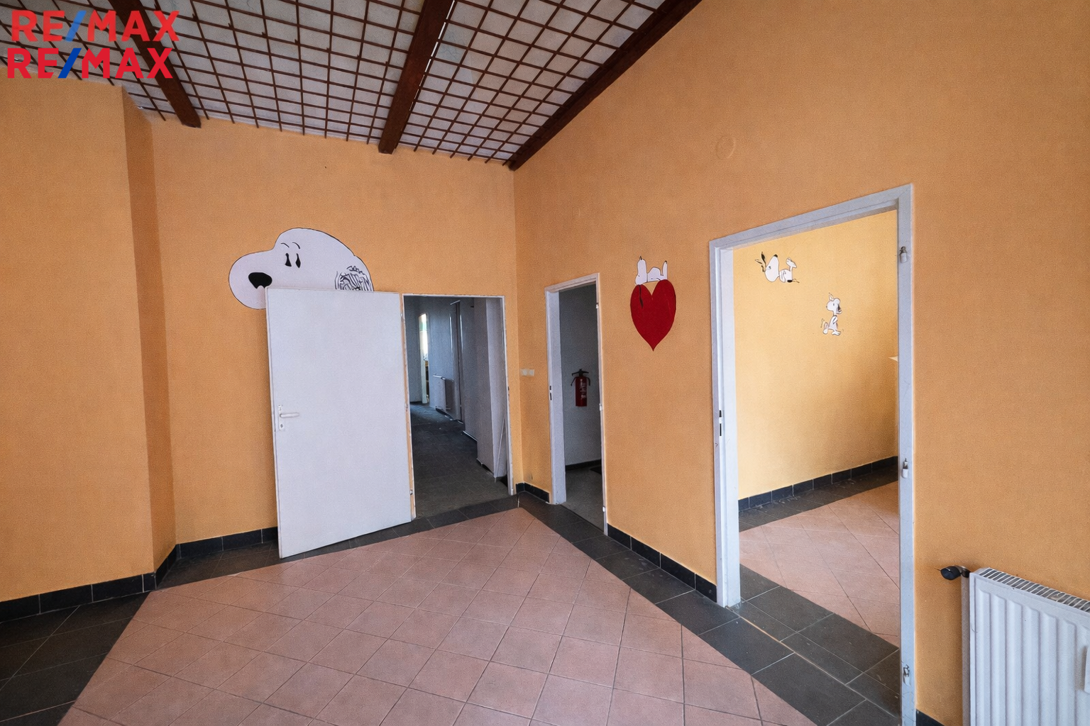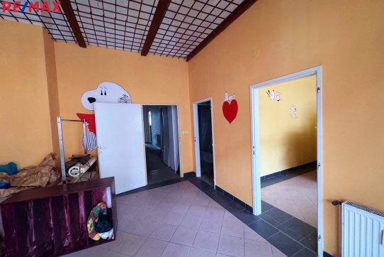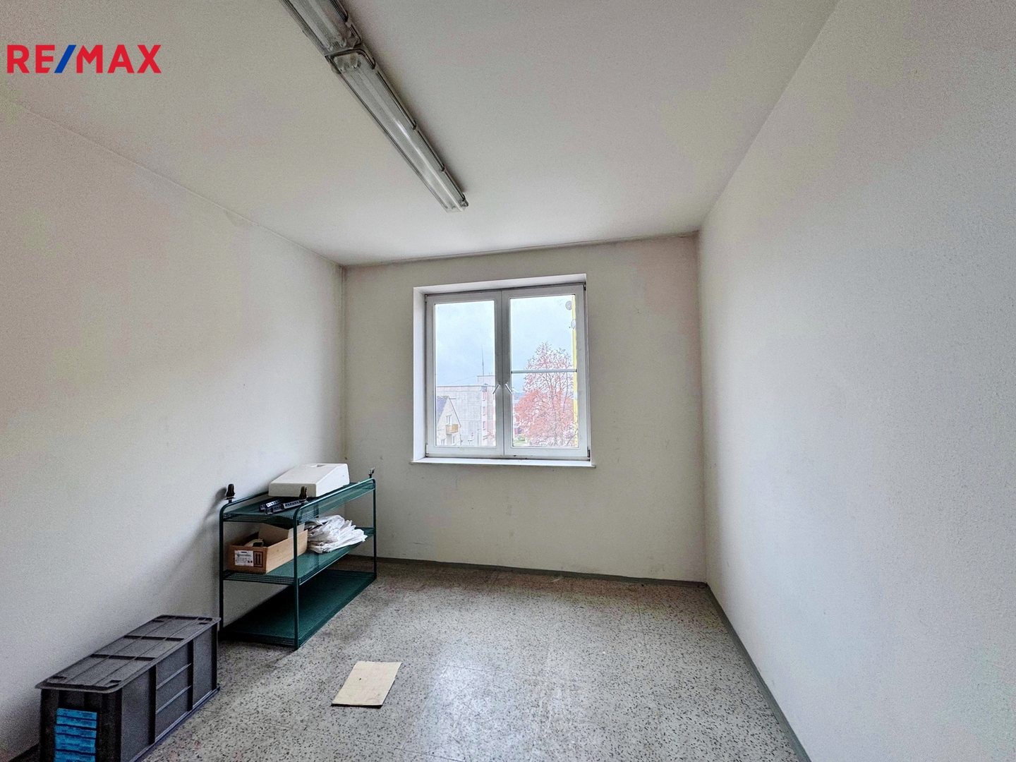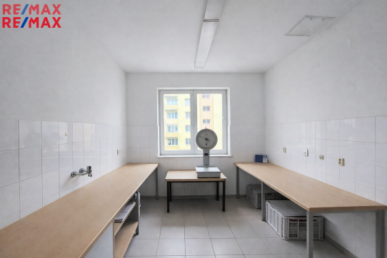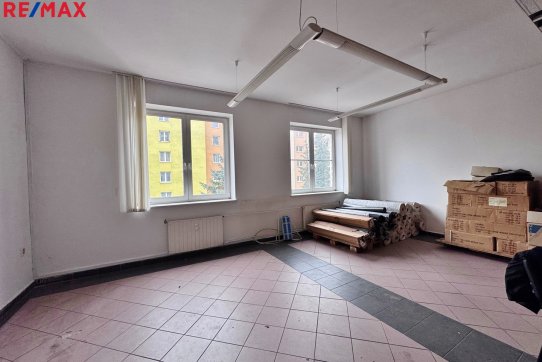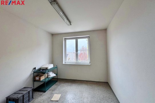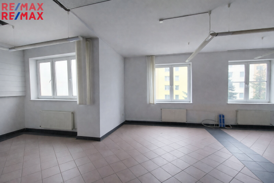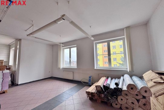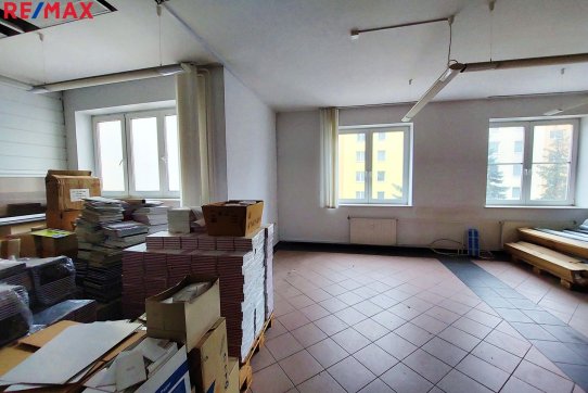 Dominantou prostoru je velká vstupní hala, která může sloužit jako hlavní obchodní prostor či kanceláře. Dále zde najdete několik menších místností, které mohou být využity například jako sklady. K dispozici je také prostorné zázemí v podobě velké kuchyně, šatny, toalety a koupelny se sprchou, což zajišťuje pohodlí pro pracovníky. Vytápění je řešeno centrálním plynovým kotlem pro celý dům s rozvody do radiátorů, tímto je řešen i ohřev vody. Dodávka tepla je pro uvedený prostor měřená kalorimetrem.