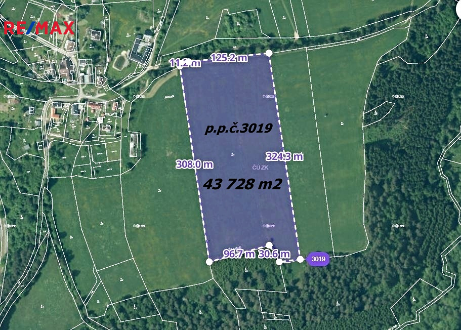 - pozemek parc. č. 3019 o evidované výměře 43728 m2, trvalý travní porost