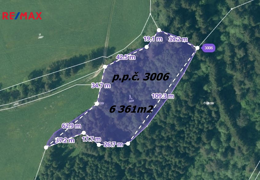 - pozemek parc. č.3006 o evidované výměře 6361 m2, lesní pozemek
