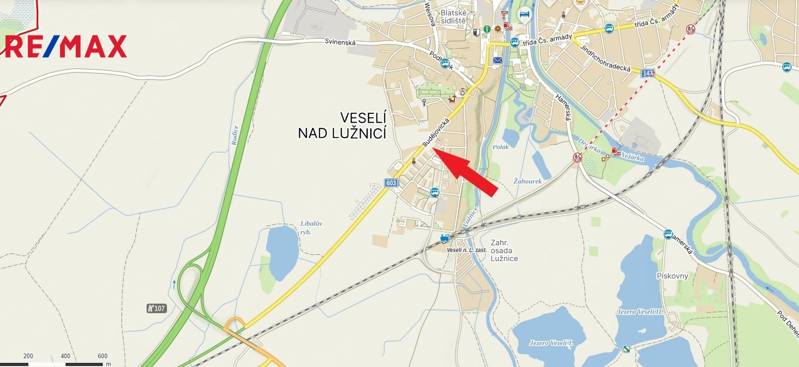 Nabízíme k prodeji pozemek o celkové výměře 2.803 m2 ve Veselí nad Lužnicí. Pozemek se nachází na okraji města, jen 1,5km od sjezdu z dálnice D3. Pozemek se nachází přímo u hlavní komunikace vedoucí do centra města a sousedí se sídlištěm. Veškeré nezbytné sítě jsou v dostupné vzdálenosti.