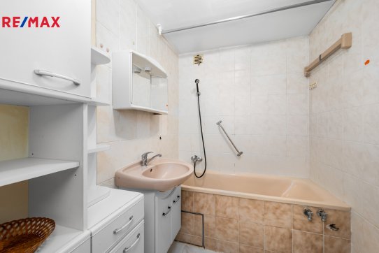 Je v dobrém a udržovaném stavu s původním umakartovým jádrem obloženým keramickým obkladem. Měsíční zálohy pro jednu osobu ve výši 3.372 Kč zahrnují fond oprav 1.431 Kč a nezahrnují spotřebu elektrické energie a internet.