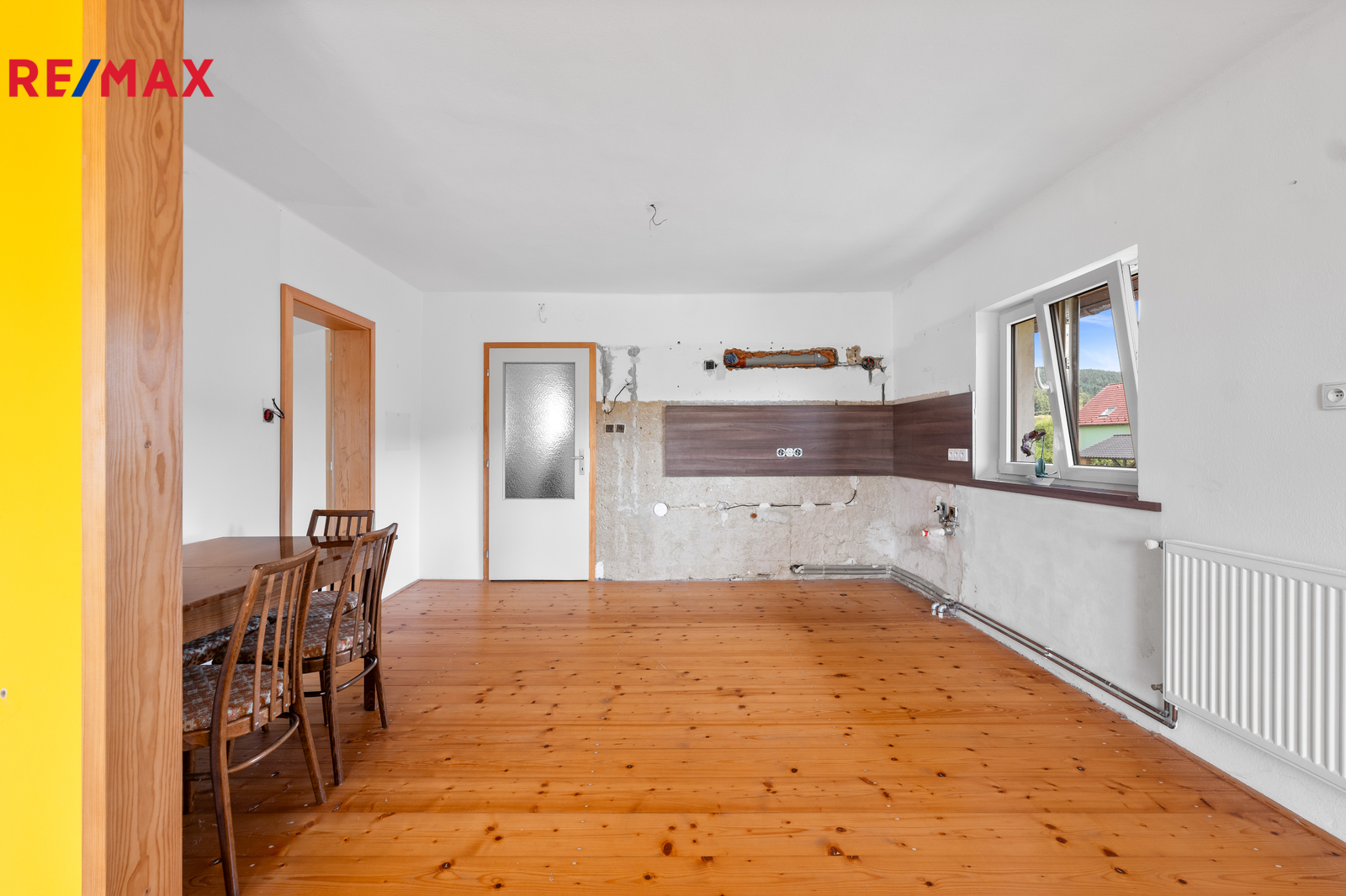 1. podlaží – dispozice 3+1, je částečně zařízený, vybavený kuchyňskou linkou, sprchovým koutem, vanou, samostatným wc, komorou a dalším nábytkem, tento byt je ihned obyvatelný