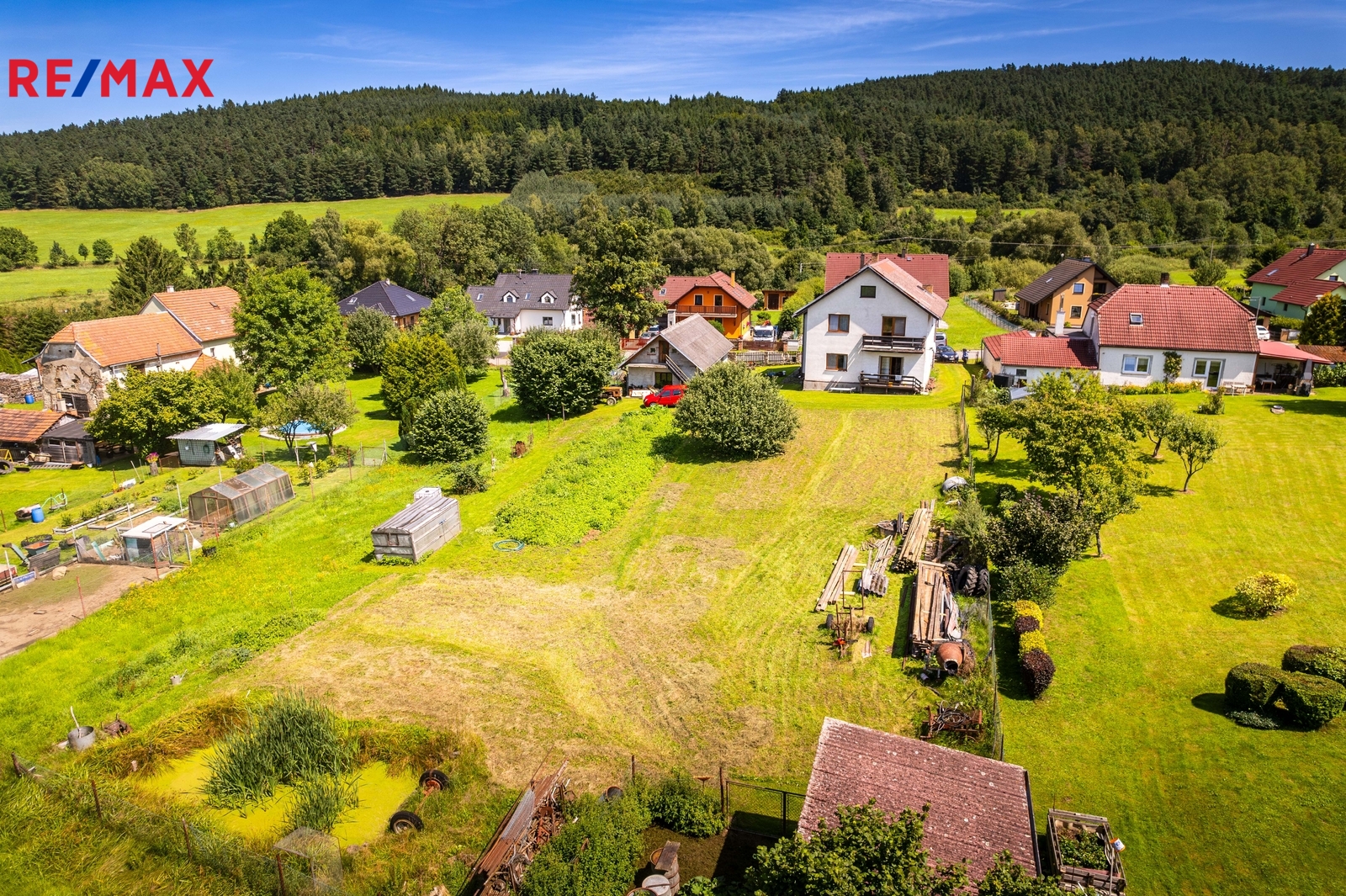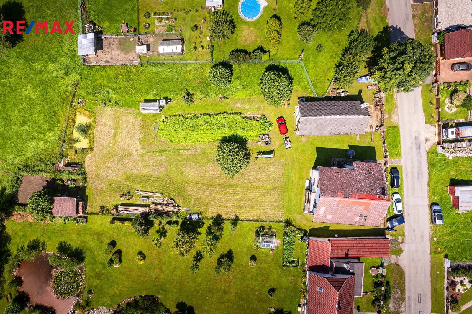 Dům stojí na vlastním rozlehlém pozemku o výměře 1 811 m², který nabízí dostatek prostoru pro relaxaci, zahradničení, nebo dětského hraní. Na pozemku se nachází také velká zahradní budova, o rozloze 81 m2, kterou lze využít jako garáž, sklad nářadí, nebo jako dílnu.