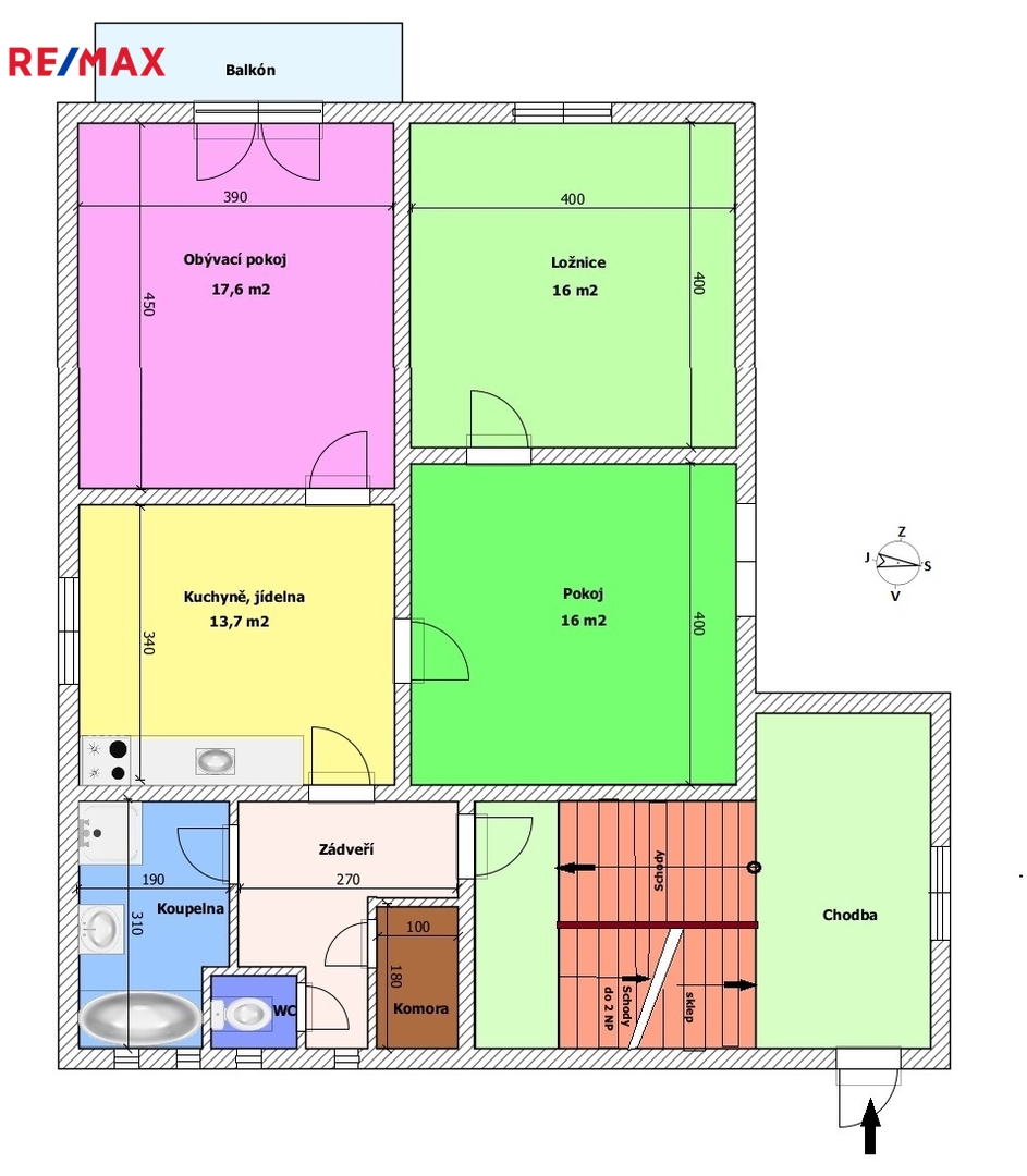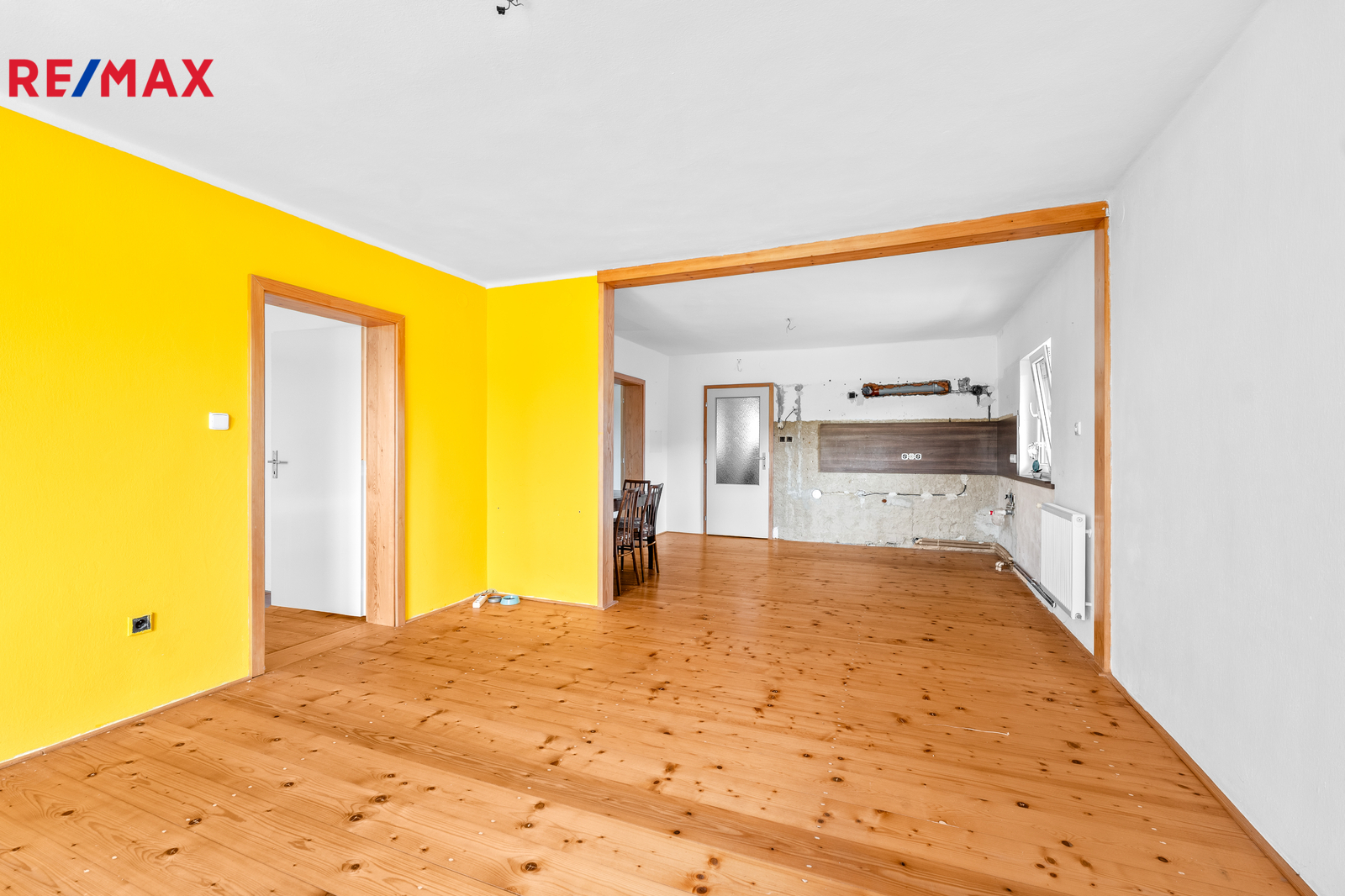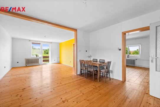 1. podlaží – dispozice 3+1, je částečně zařízený, vybavený kuchyňskou linkou, sprchovým koutem, vanou, samostatným wc, komorou a dalším nábytkem, tento byt je ihned obyvatelný