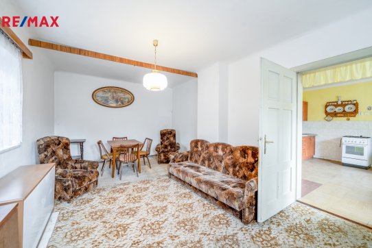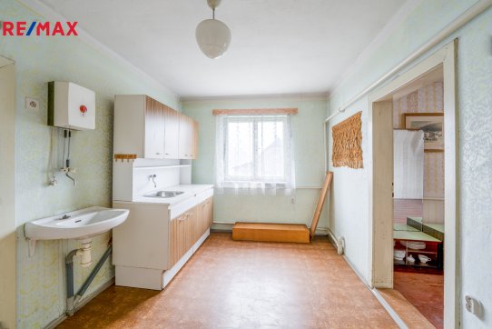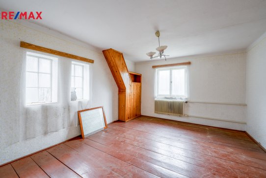 Dům v přízemí nabízí kuchyň s kamny a prostorem pro jídelní kout, obývací pokoj, koupelnu s vanou samostatné WC, vstupní zádveří a chodbu. Dále schody vedoucí do 2.NP, kde jsou tři pokoje. V domě je rozvedené ústřední vytápění, kotel na tuhá paliva umístěn v patře v chodbě. Část oken plastových, část původních dřevěných. Zastavěná plocha a nádvoří činí 408 m², zatímco užitná plocha dosahuje 115 m². Objekt je v současnosti v původním stavu a vyžaduje rekonstrukci, což představuje skvělou příležitost pro ty, kteří mají zájem o úpravy a přizpůsobení domu podle svých potřeb a vkusu. Na zahradě vystavěna kolna.