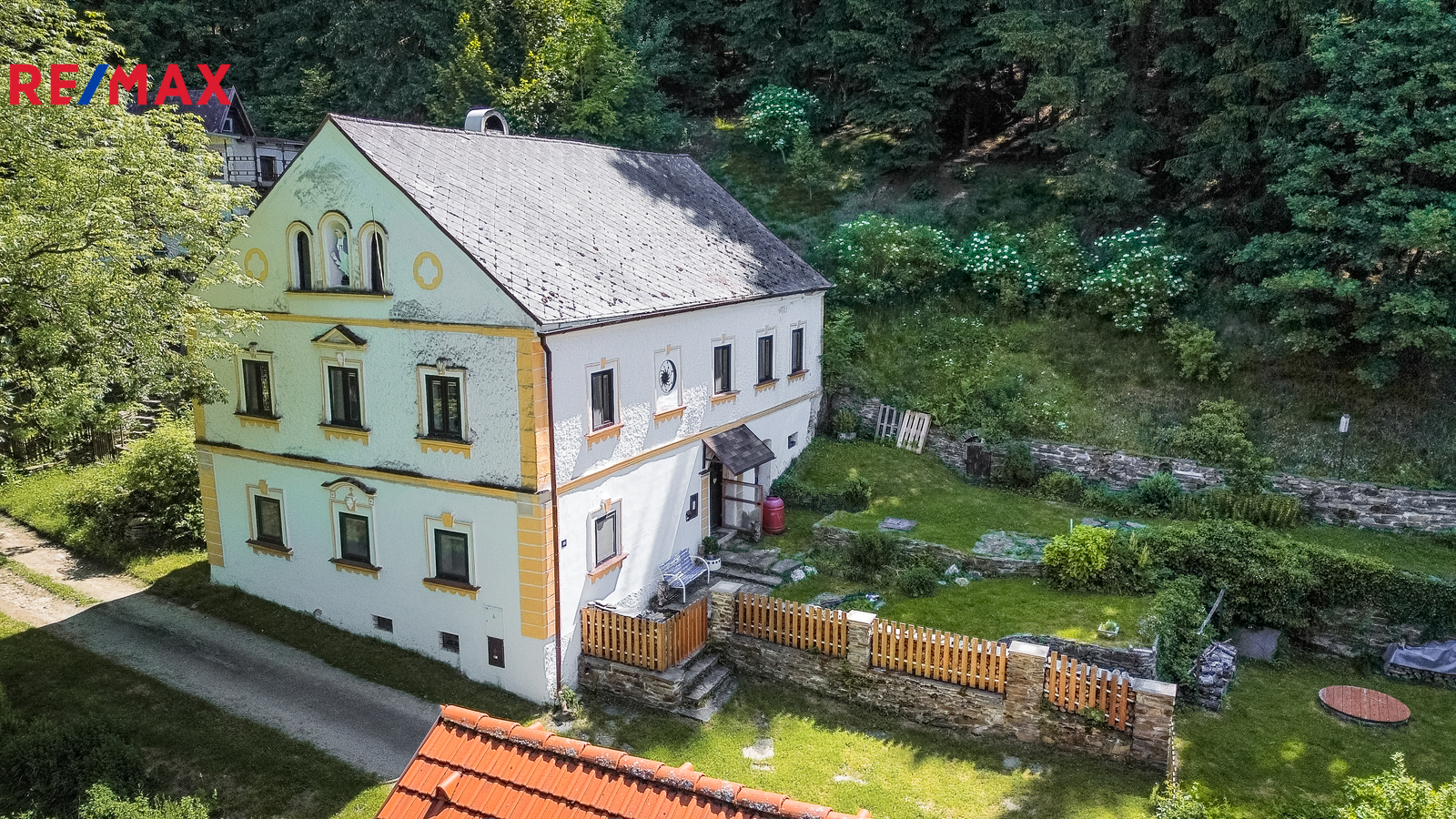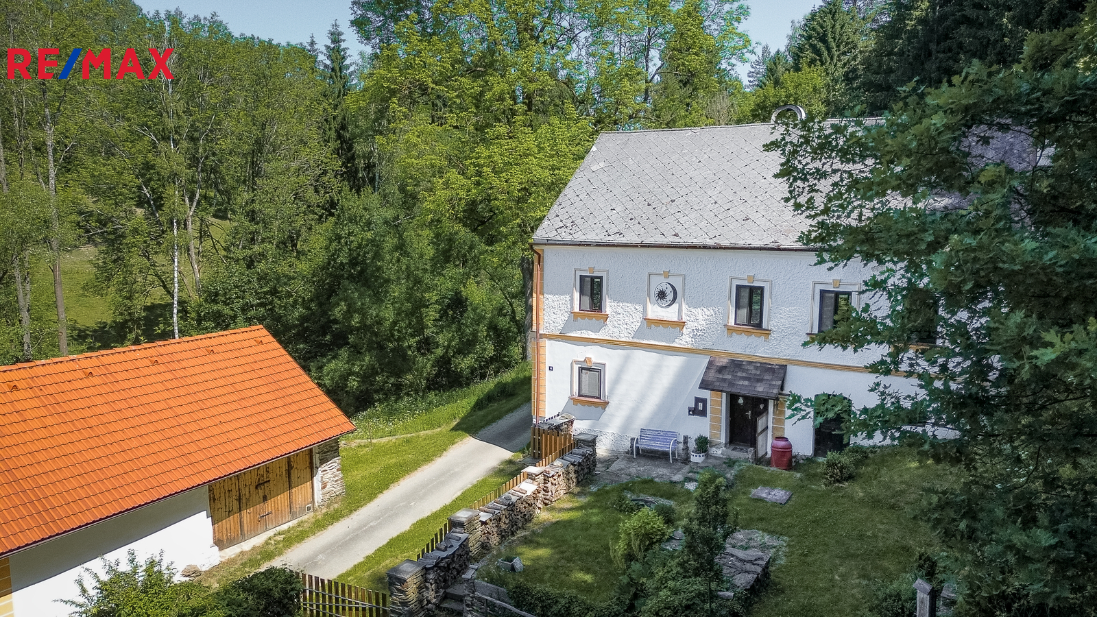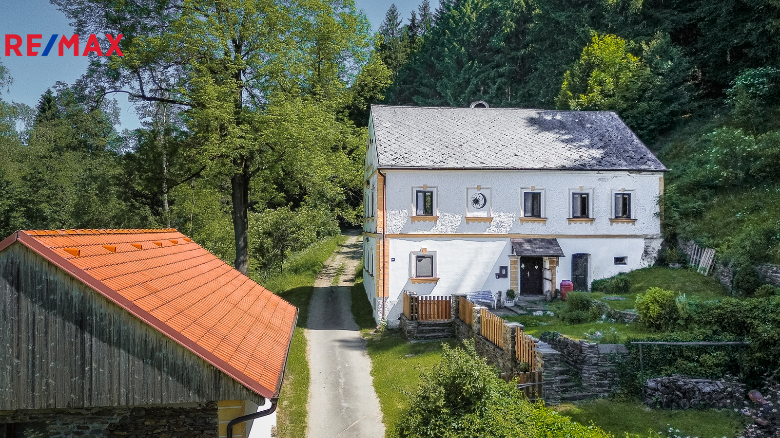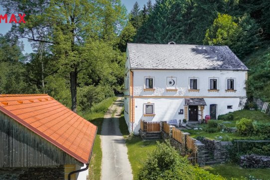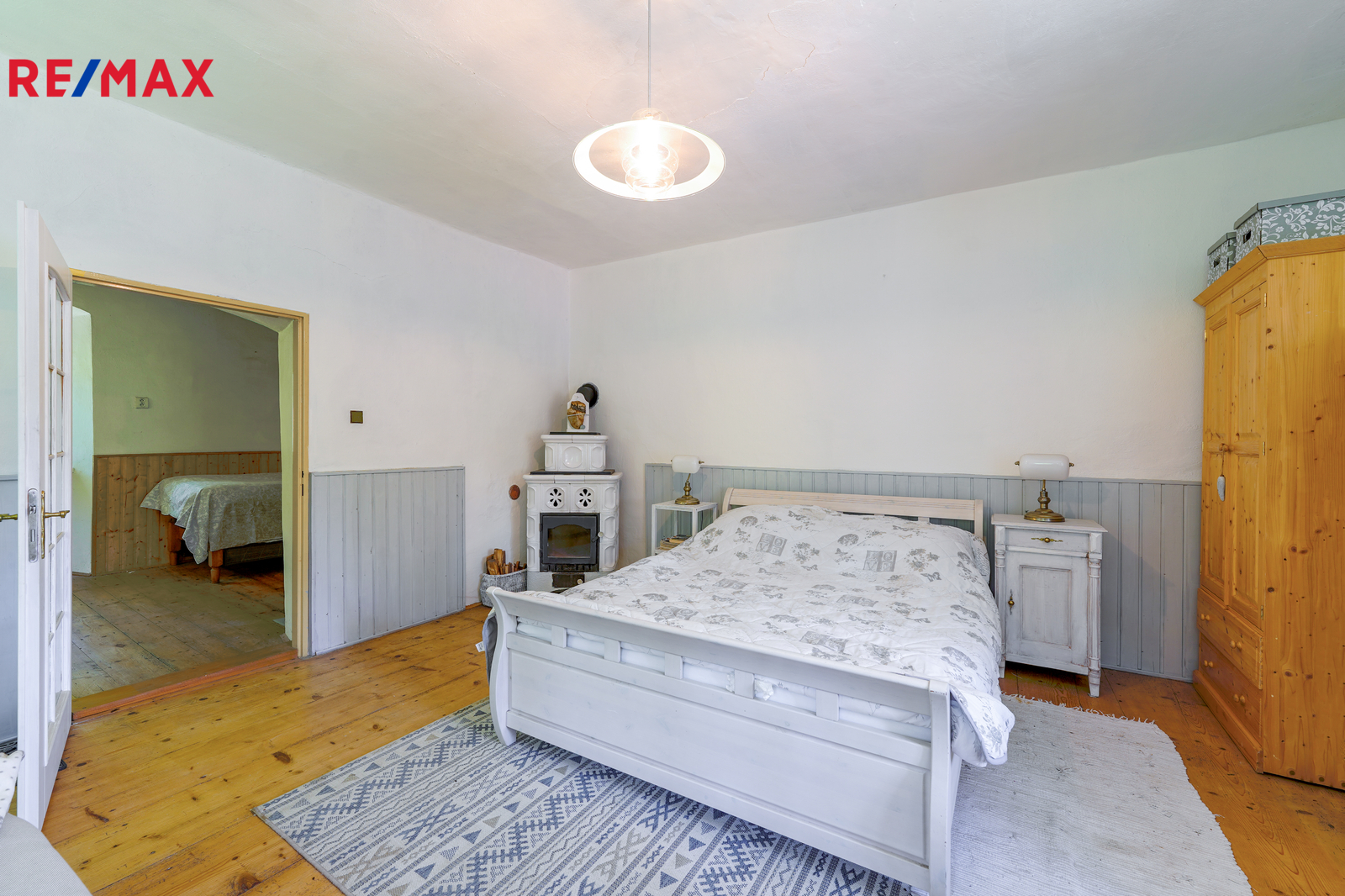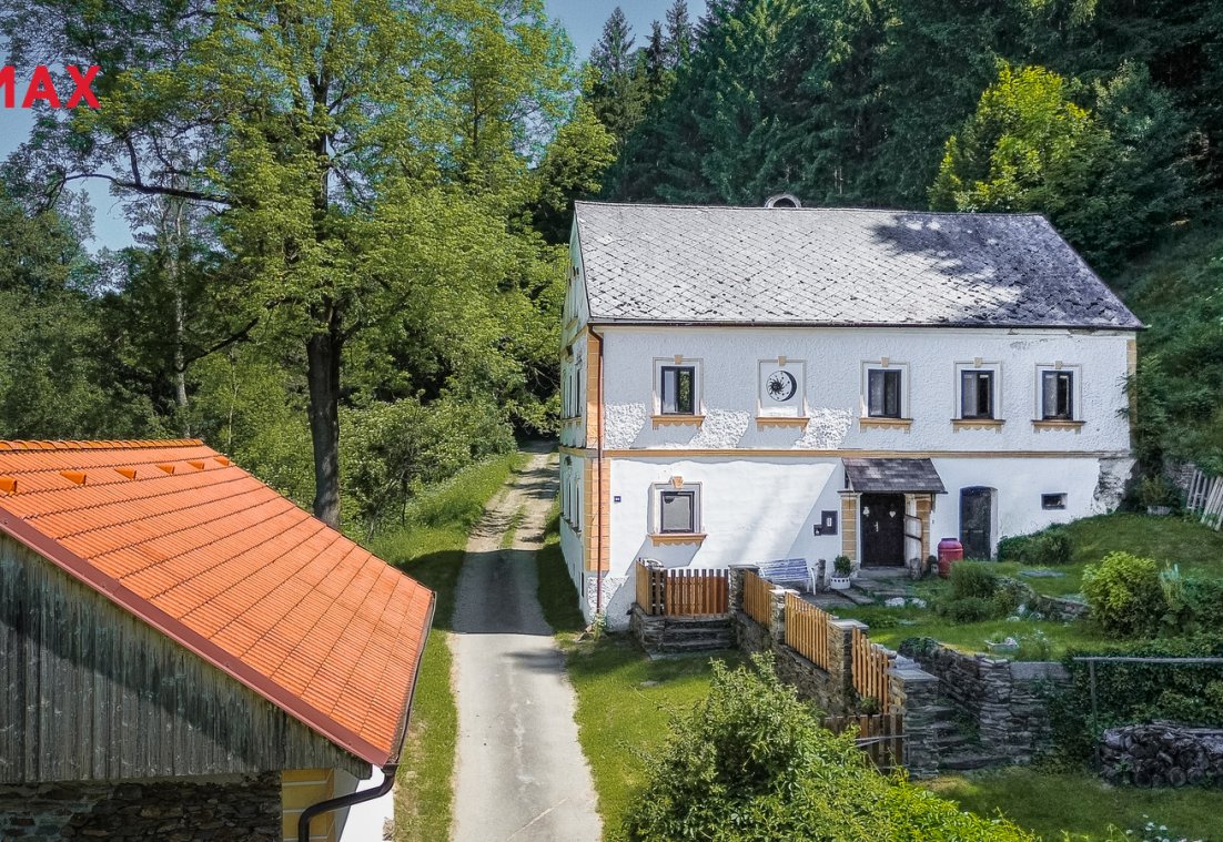 Exkluzivně nabízíme k prodeji rodinný dům v obci Rožmitál na Šumavě se zahradou o celkové výměře 974 m2. Rodinný dům je na krásném klidném místě, kde jistě každý najde čas k odpočinku a relaxaci. Uchvátí vás klidem, svou energií a polohou . Zastavěná plocha domu a nádvoří tvoří 585 m2, k tomu je souběžně k prodeji evidovaná zemědělská stavba se zastavěnou plochou 108 m2 a okolní pozemky 180 m2 a 101 m2. Nad domem se nachází Torzo velké kaple Panny Marie Pomocné z r.1723 odkud je krásný výhled do krajiny. Tento samostatně stojící objekt typu smíšené stavby disponuje dvěma patry a nabízí celkem pět pokojů. Dispozičně 1. NP. obývací pokoj propojený s kuchyňským koutem a jídelnou, vstupní chodbou, samostatným WC. Dále sklepními prostory a dřevěným schodištěm vedoucí do 2. NP. kde se nachází 3 pokoje, spojovací větší chodba, kde je vytvořen odpočinkový kout s knihovnou, koupelna s vanou a WC. Celý půdní prostor je připravený pro případné rozšíření obytné části. Část domu je též podsklepena, kde je možnost vytvoření vinotéky nebo k uskladnění ovoce a zeleniny, či jen tak se ochladit v letních horkých dnech. Dům je v dobrém stavu určen jak pro rodinné či rekreační bydlení.
