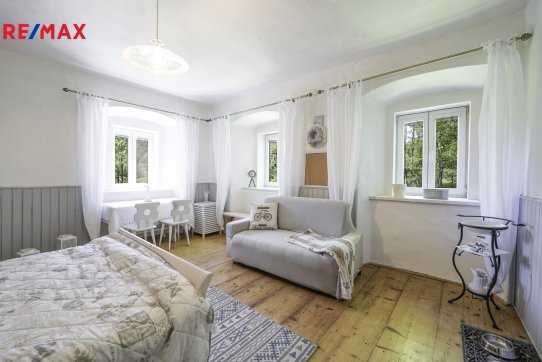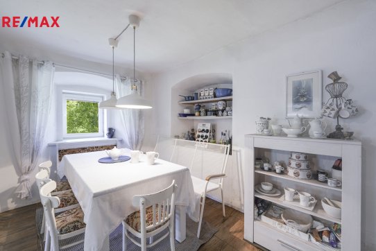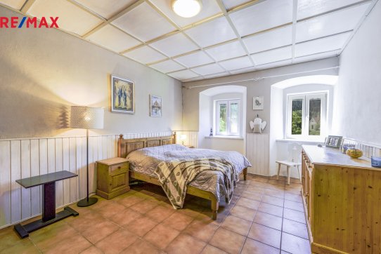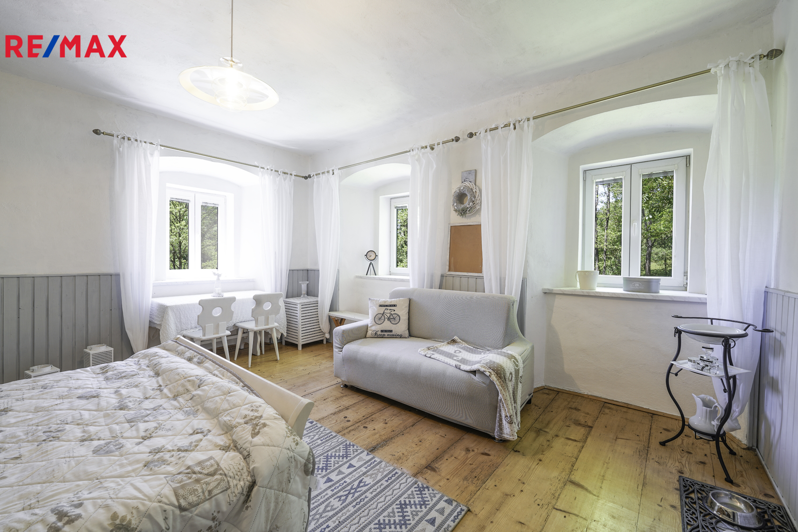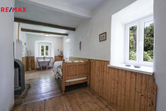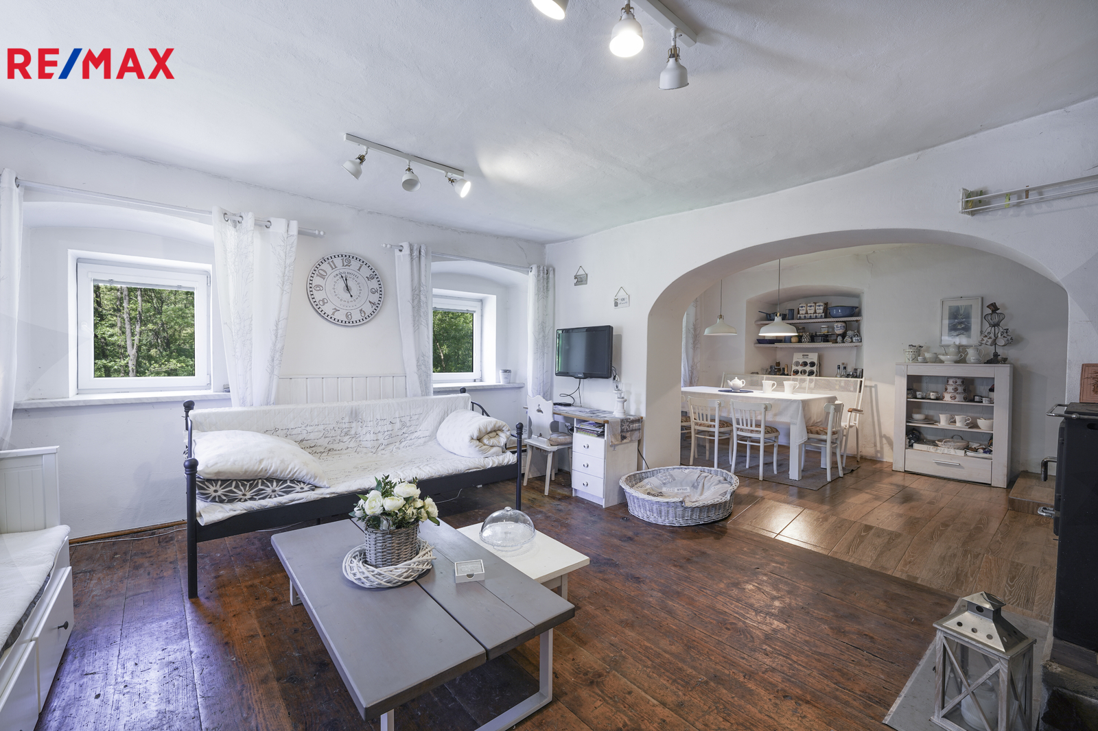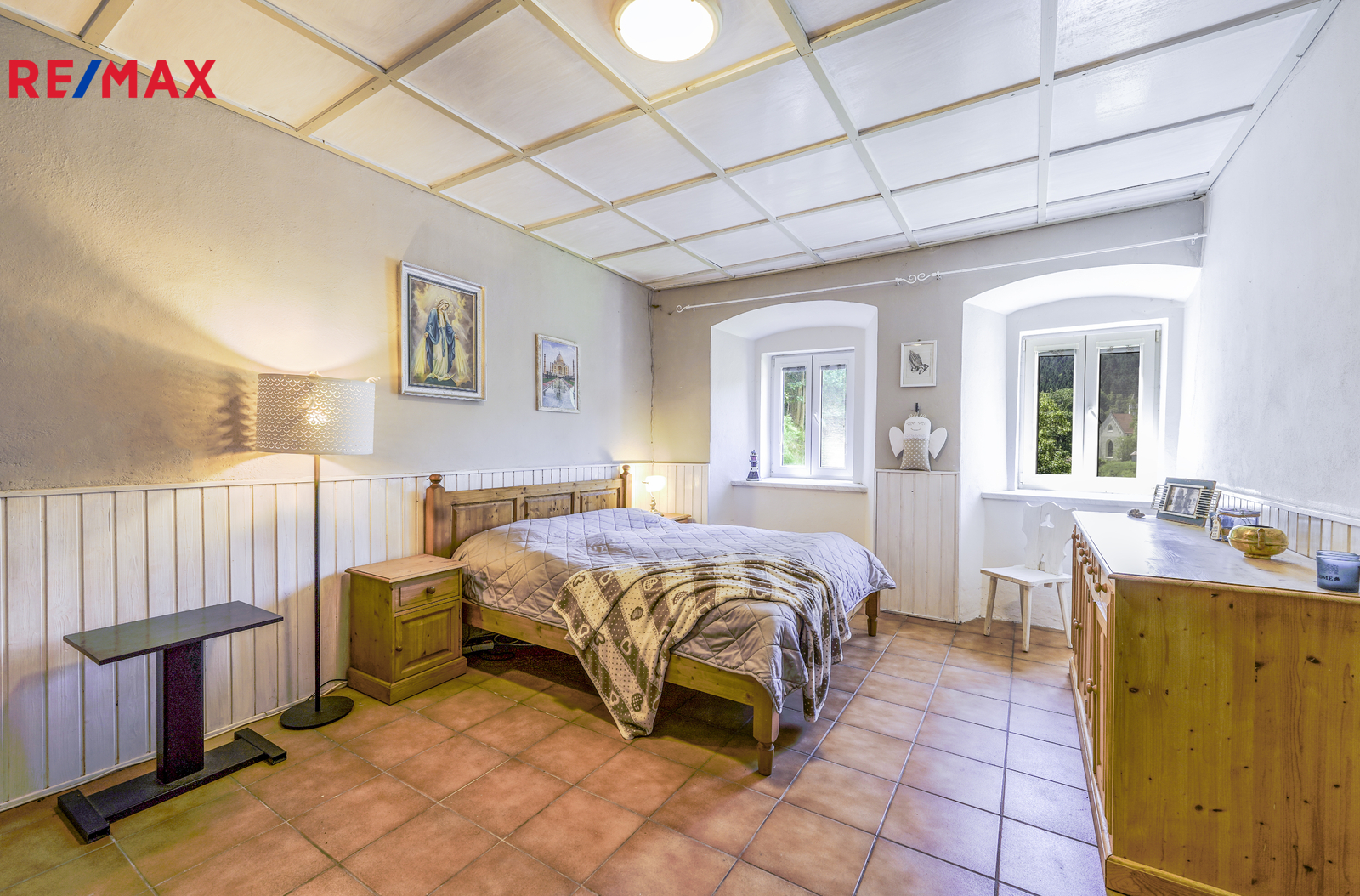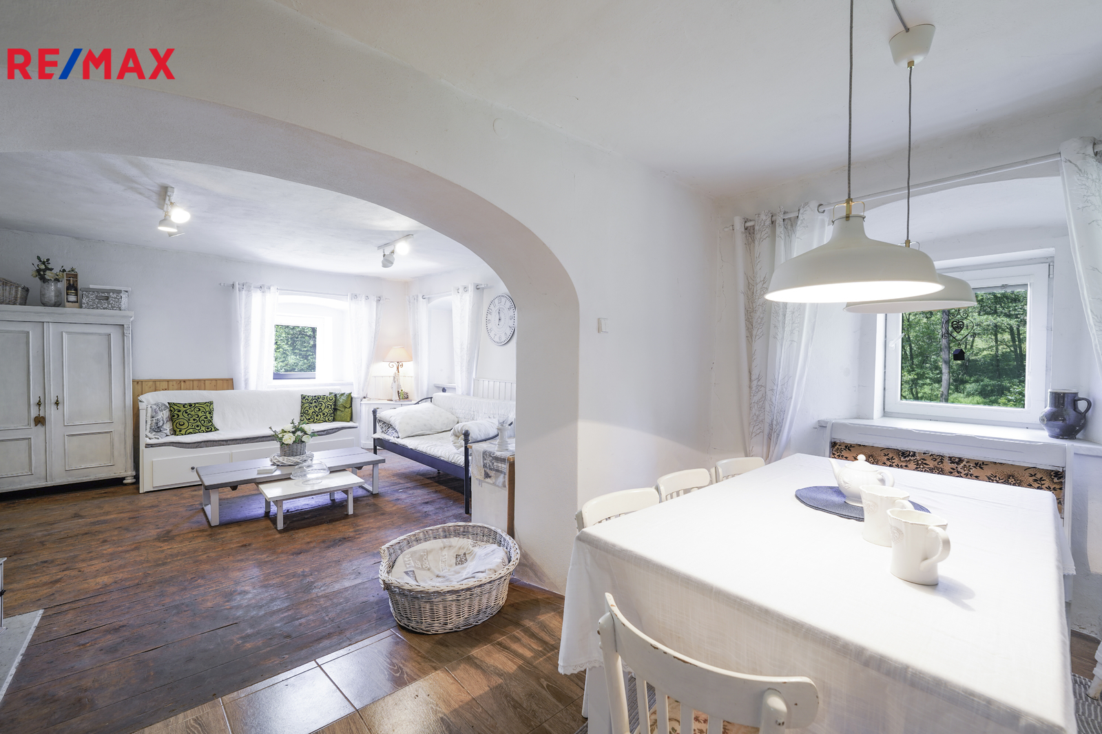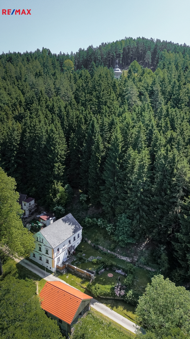 Exkluzivně nabízíme k prodeji rodinný dům v obci Rožmitál na Šumavě se zahradou o celkové výměře 974 m2. Rodinný dům je na krásném klidném místě, kde jistě každý najde čas k odpočinku a relaxaci. Uchvátí vás klidem, svou energií a polohou . Zastavěná plocha domu a nádvoří tvoří 585 m2, k tomu je souběžně k prodeji evidovaná zemědělská stavba se zastavěnou plochou 108 m2 a okolní pozemky 180 m2 a 101 m2. Nad domem se nachází Torzo velké kaple Panny Marie Pomocné z r.1723 odkud je krásný výhled do krajiny. Tento samostatně stojící objekt typu smíšené stavby disponuje dvěma patry a nabízí celkem pět pokojů. Dispozičně 1. NP. obývací pokoj propojený s kuchyňským koutem a jídelnou, vstupní chodbou, samostatným WC. Dále sklepními prostory a dřevěným schodištěm vedoucí do 2. NP. kde se nachází 3 pokoje, spojovací větší chodba, kde je vytvořen odpočinkový kout s knihovnou, koupelna s vanou a WC. Celý půdní prostor je připravený pro případné rozšíření obytné části. Část domu je též podsklepena, kde je možnost vytvoření vinotéky nebo k uskladnění ovoce a zeleniny, či jen tak se ochladit v letních horkých dnech. Dům je v dobrém stavu určen jak pro rodinné či rekreační bydlení.
