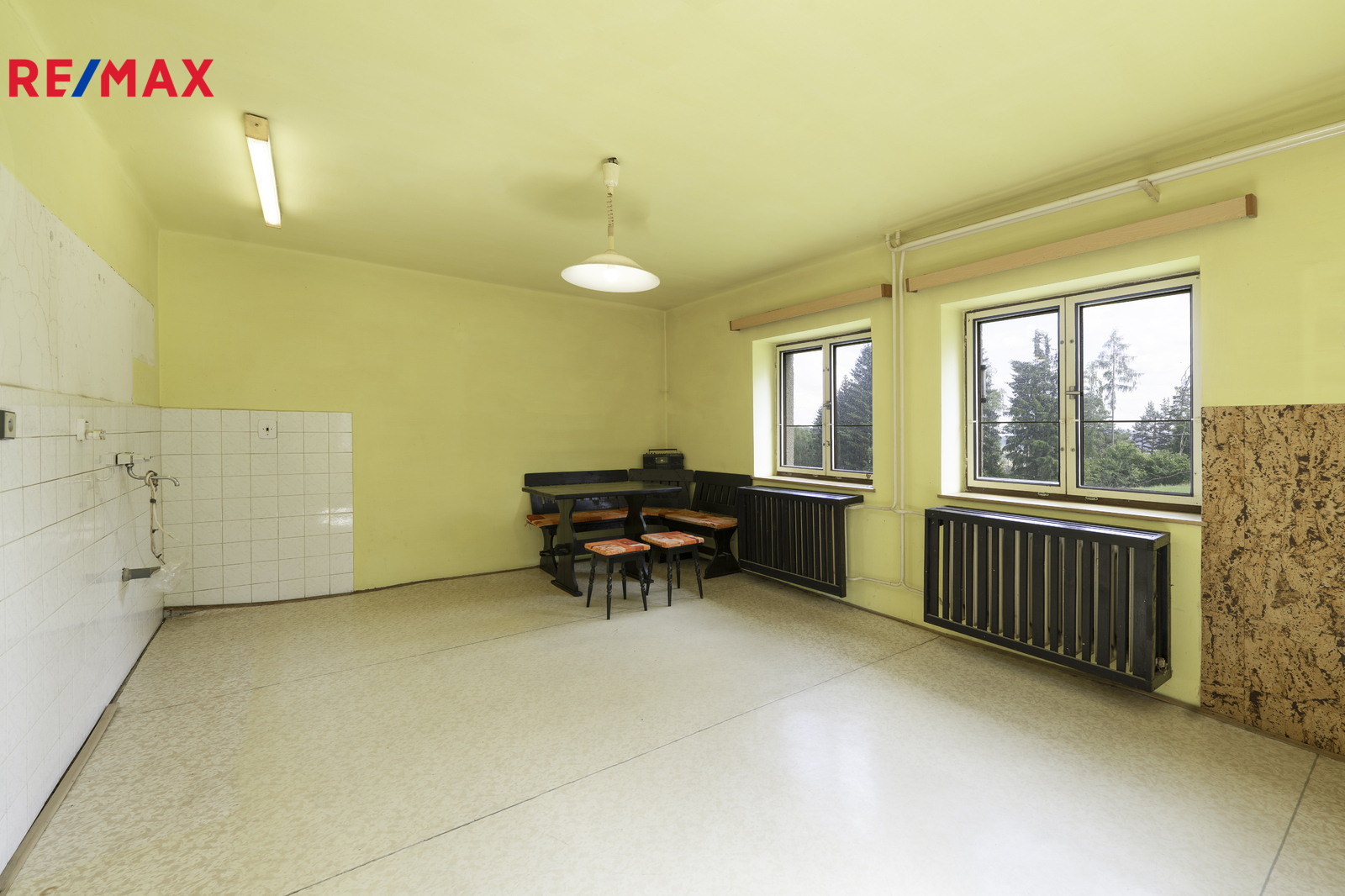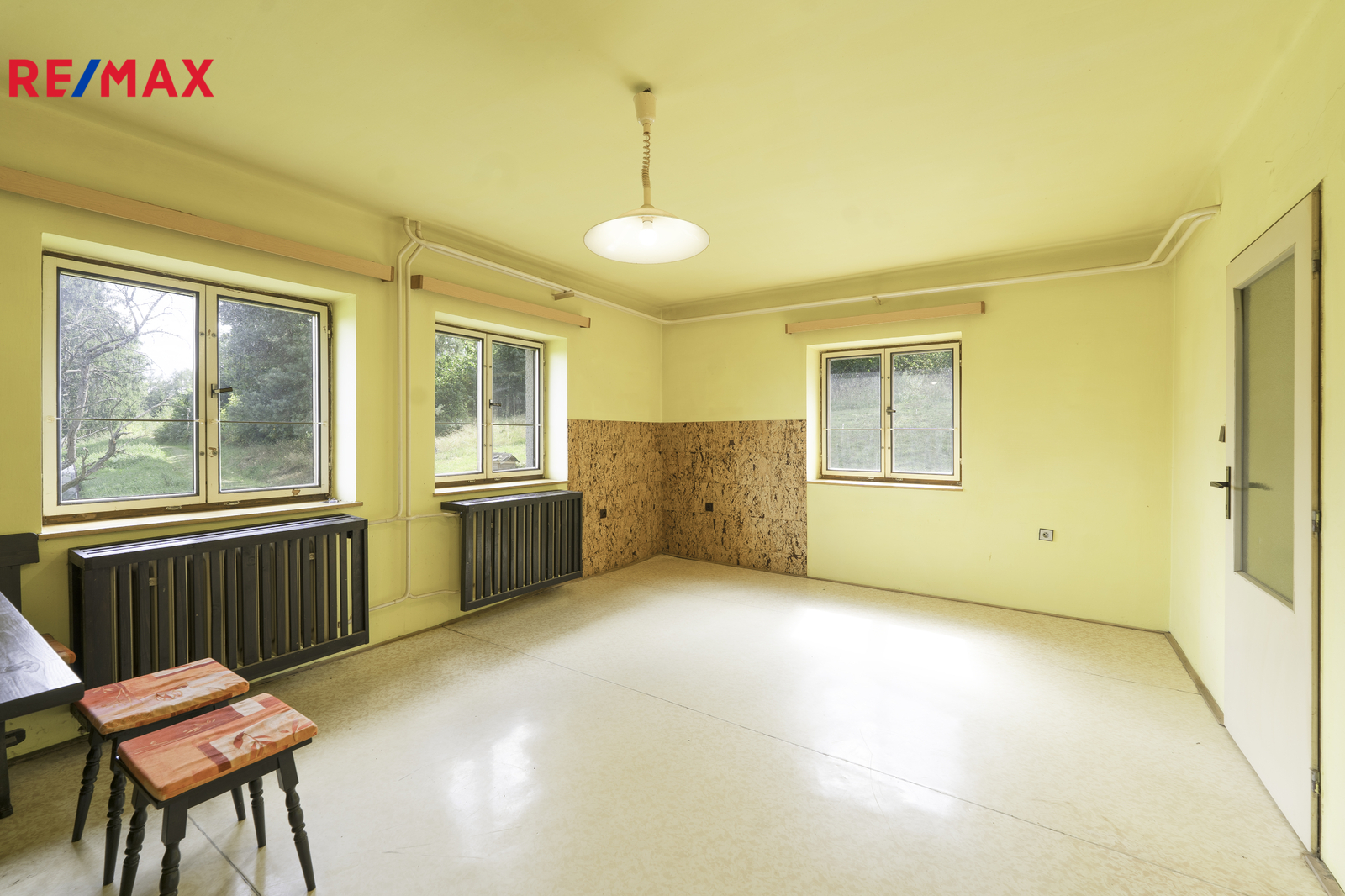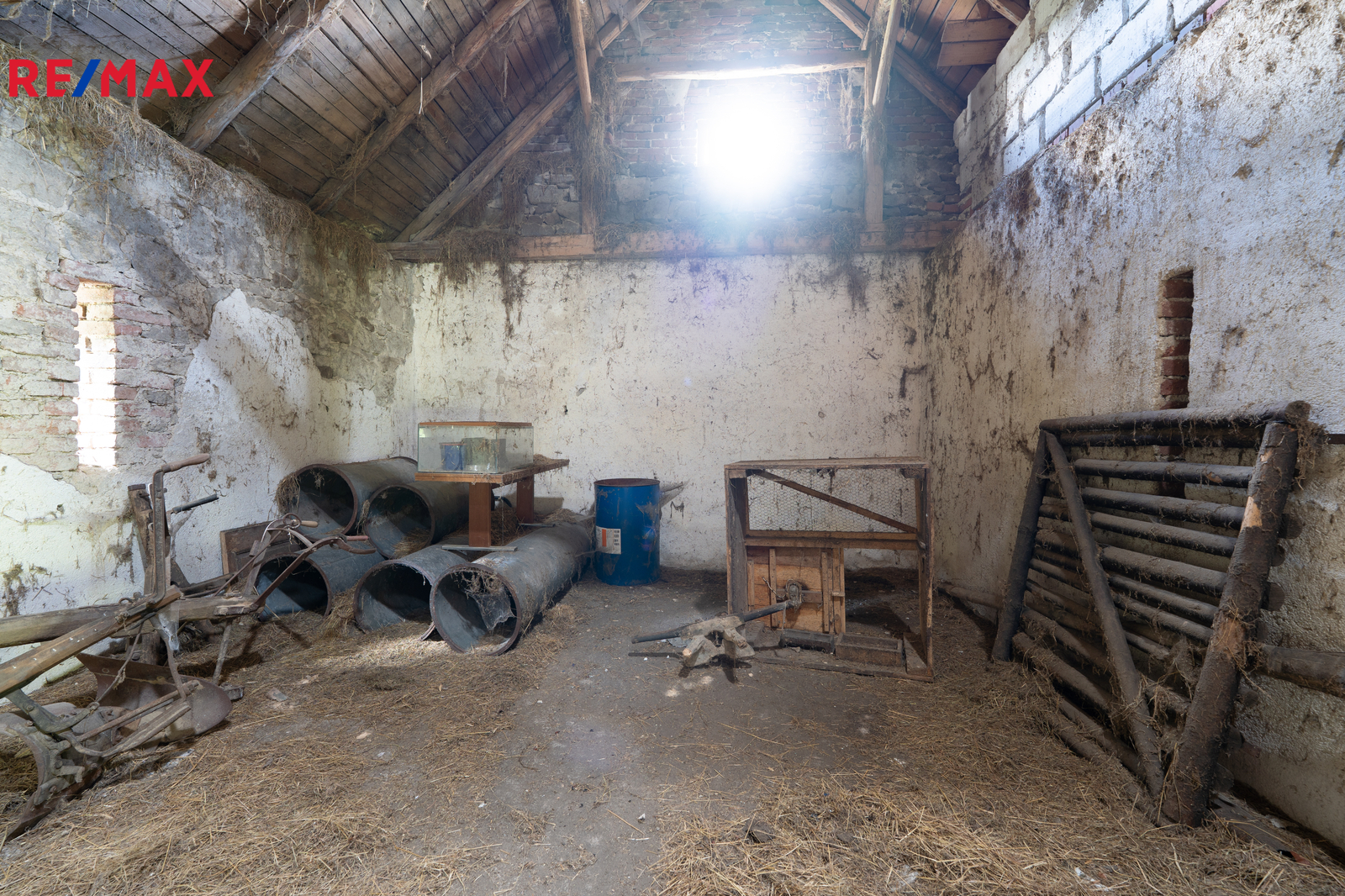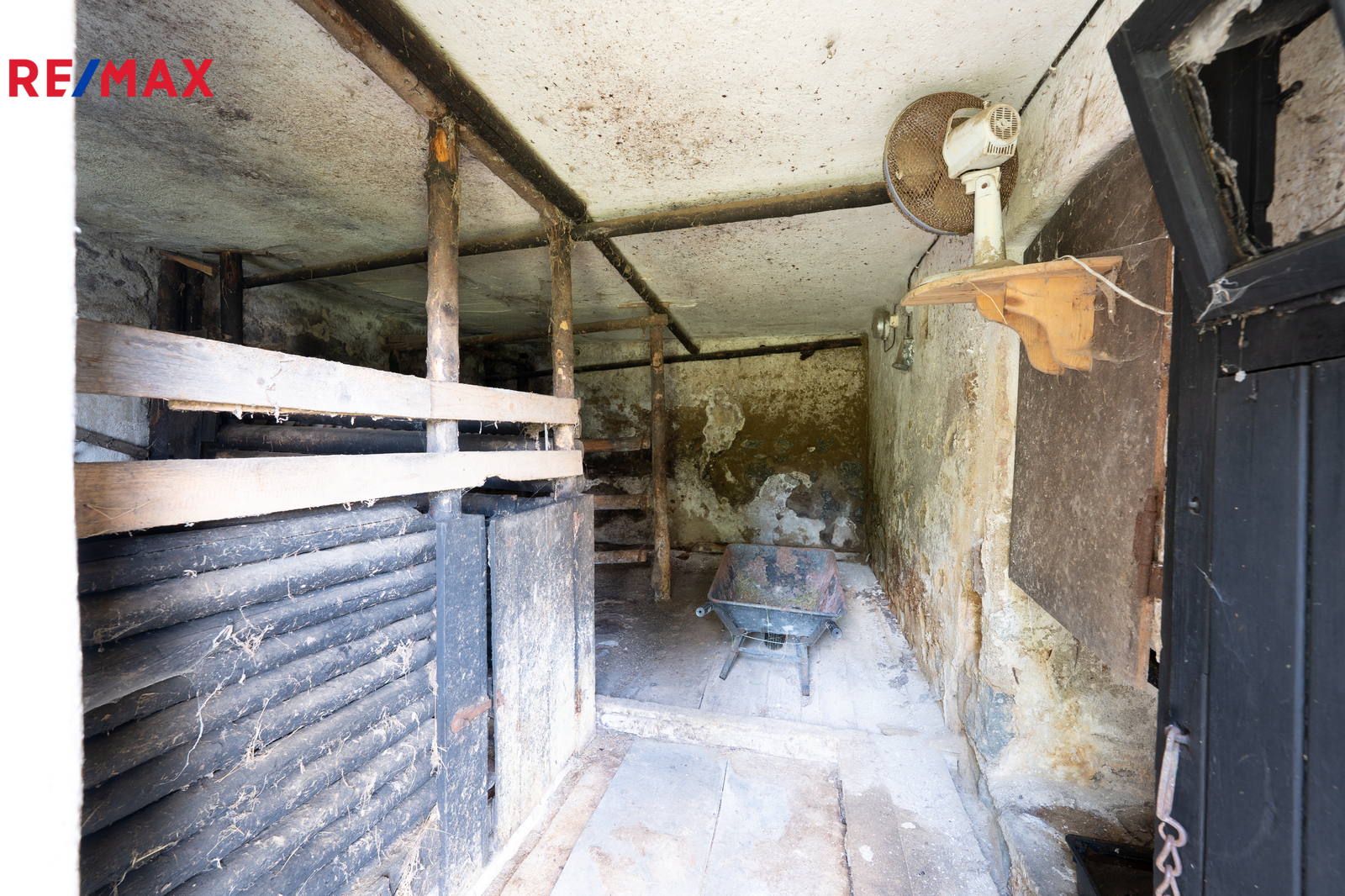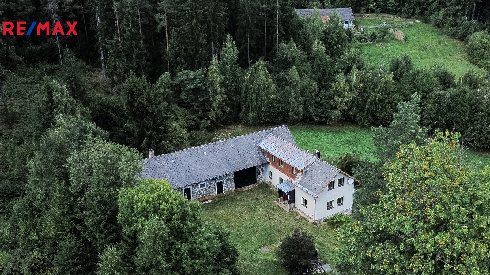 V 1. NP se nachází kuchyňský prostor, jeden samostatný pokoj, koupelna, samostatné WC, kotelna s kotlem na tuhá paliva, vstupní zádveří, chodba se schodištěm vedoucí do 2.NP, kde jsou dva samostatné pokoje, prostor na vytvoření kompletní koupelny a samostatné WC stejně jako v 1.NP a komora pro uložení věcí. Nemovitost dispozičně poskytuje dostatek prostoru pro rodinu a trvalé bydlení, nebo jako chalupářské bydlení pro relaxaci a odpočinek. Na obytnou část domu navazuje zemědělská část domu a to stodola, která je průchozí na zahradu. Dále zemědělská část nabízí chlévy, které dávají možnost k hospodářské aktivitě. Kanalizace je řešena jímkou. Voda řešena ze studny. Elektřina 230 V, 400V.