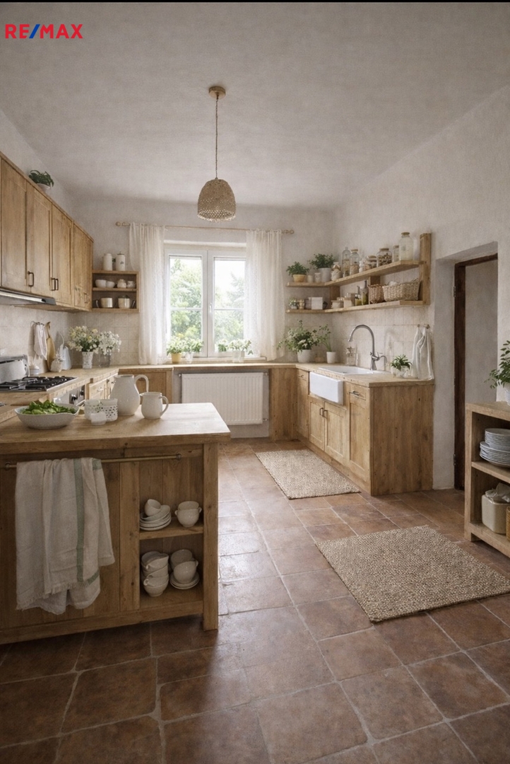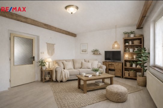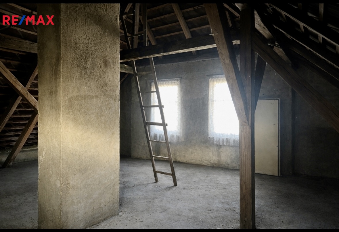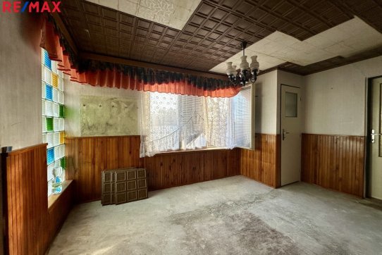 Dům disponuje přízemím s užitnou plochu 116 m². Hlavním vchodem vstoupíme do haly, která sloužila také jako jídelna. Z ní je pak vstup do jednotlivých pokojů a schody do podkroví. Dům je podsklepený. Ve sklepě je technická místnost a je zde prostor pro větší dílnu. Podkroví je připraveno pro Váš projekt. Můžete si jej dispozičně uzpůsobit dle Vašich potřeb.